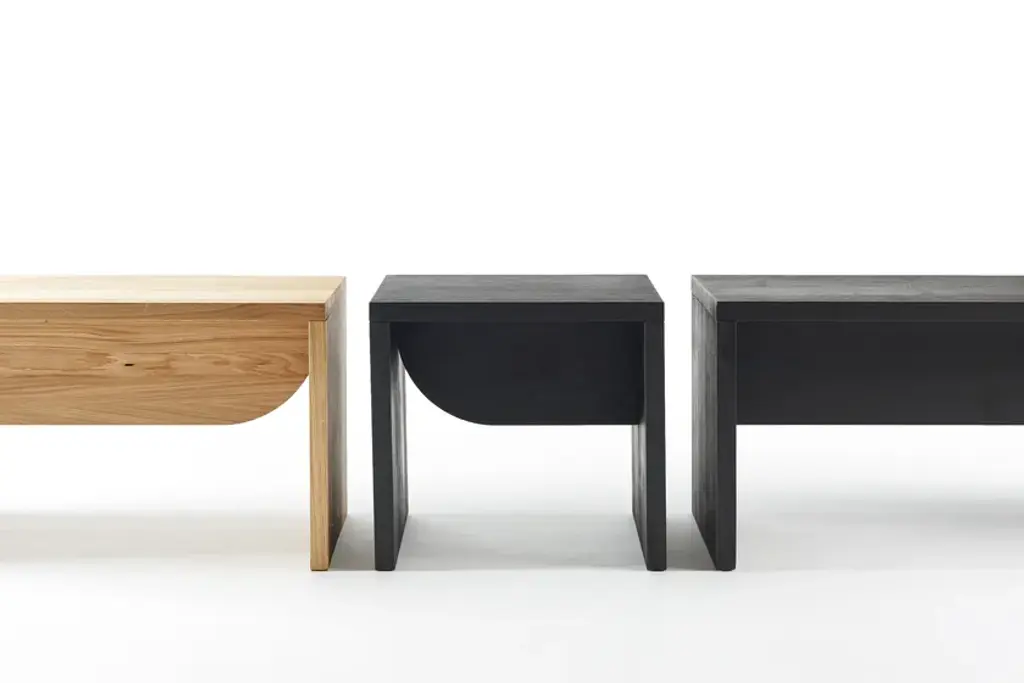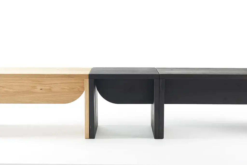 A hyperbola, like a curve in the Cartesian plane. The pursuit of this curve has led to a collection featuring strictly geometric, compact lines with a radically contemporary feel.The solidity of the main crossbeam, which defines the line of the seat, is made possible by resistant interlocking joints connecting with the side elements.The underlying principles of this project - designed for use in museums, shops, stands, waiting rooms, common areas, and so on - are simplicity and economy.The Iperbole seats include a stool and a classic 2-seater bench. Both are made of lacquered oak or ash wood with a highly textured finish.Colors:natural wood, white, blackComposition:oak, ashwood
