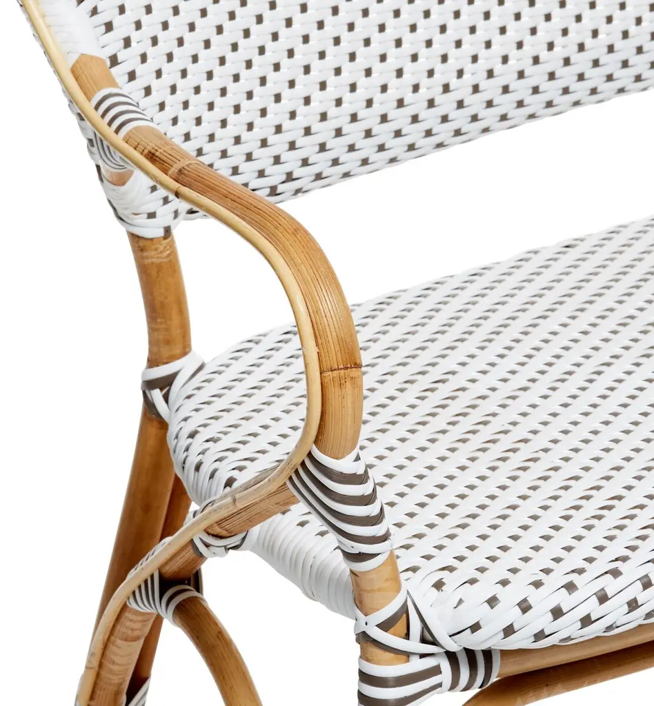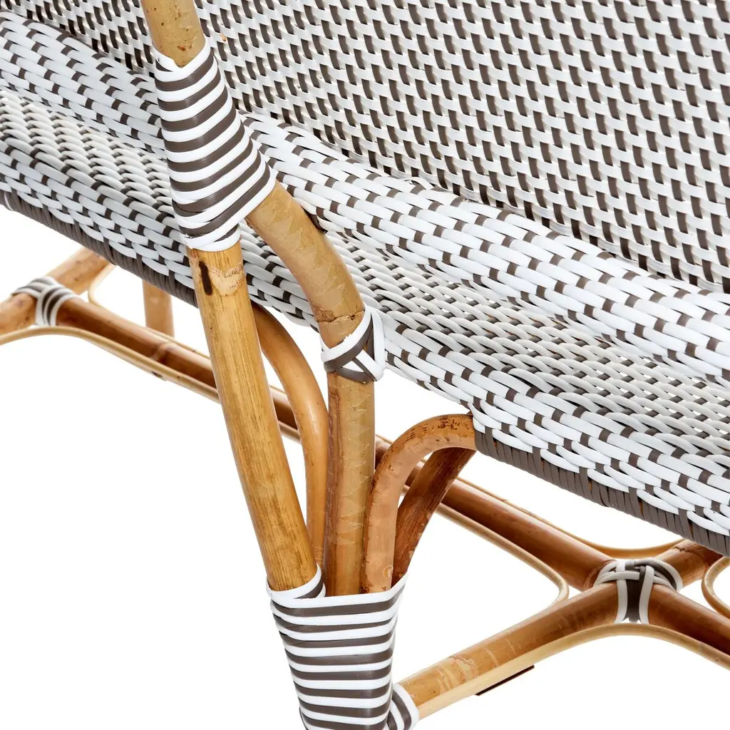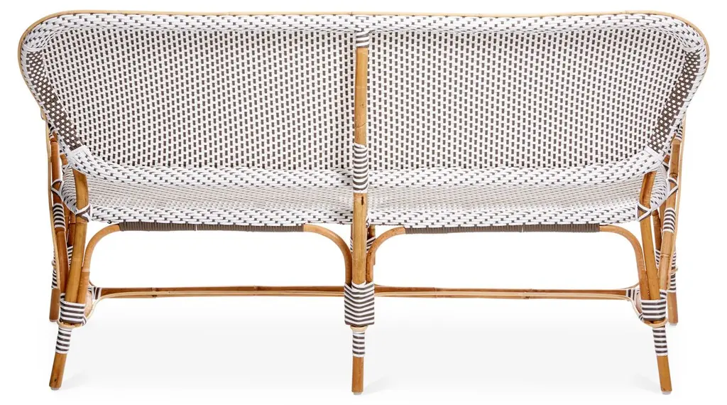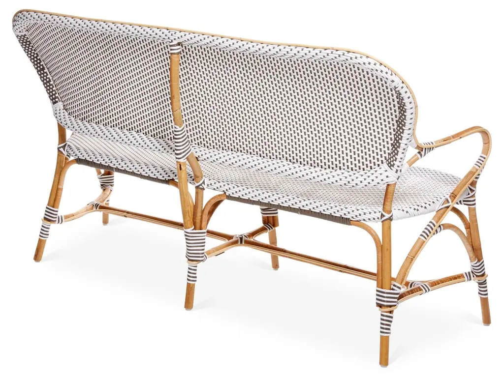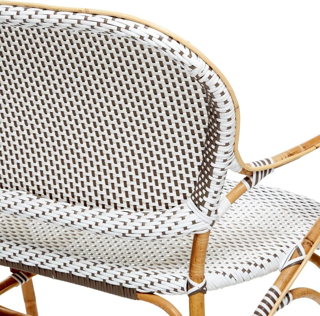 This bench is bolstered to a rattan frame and wrapped in Artfibre--an easy-to-clean cord. . We love how woven white-and-brown accents add a pop of pattern and contrast to the exposed frame. Suitable for indoor use only.