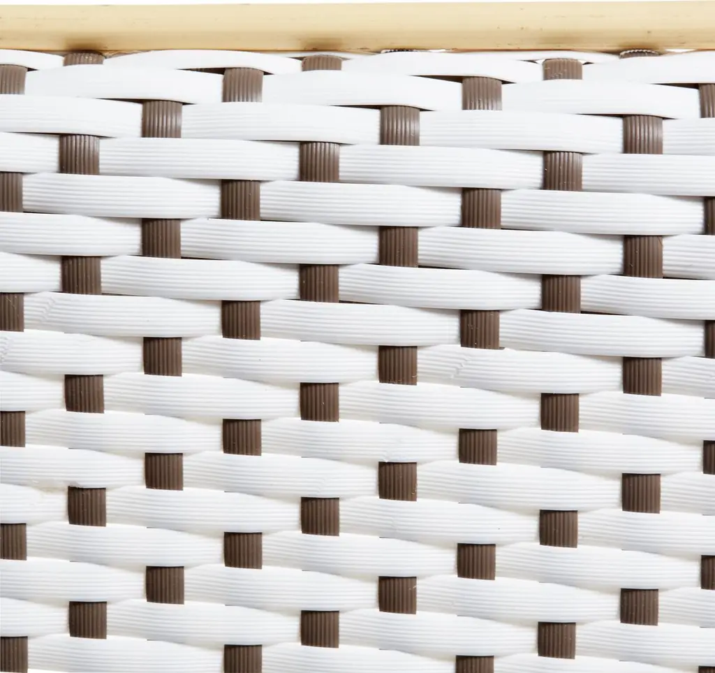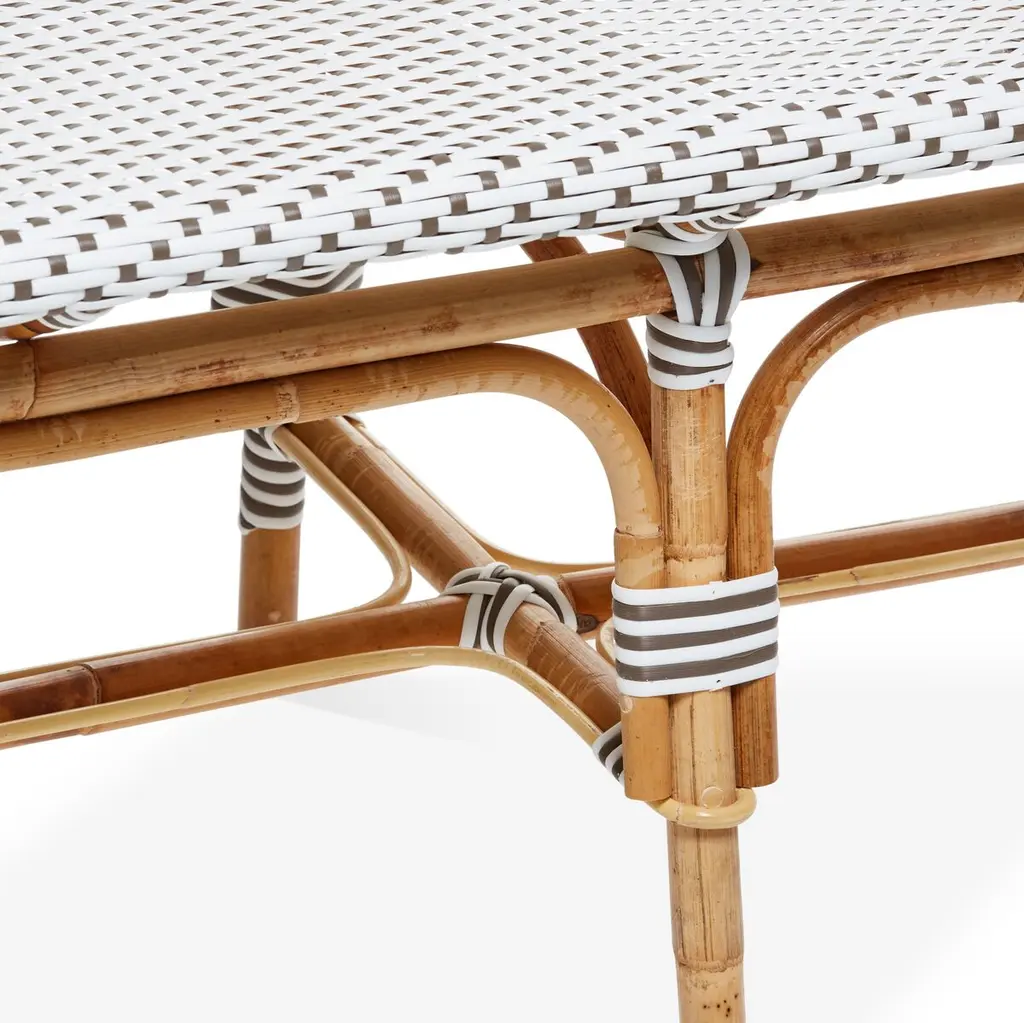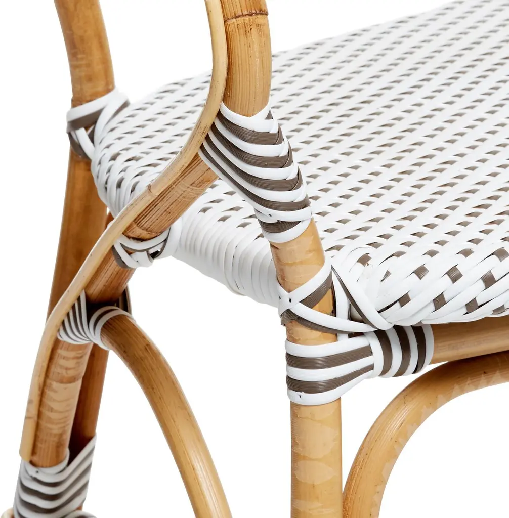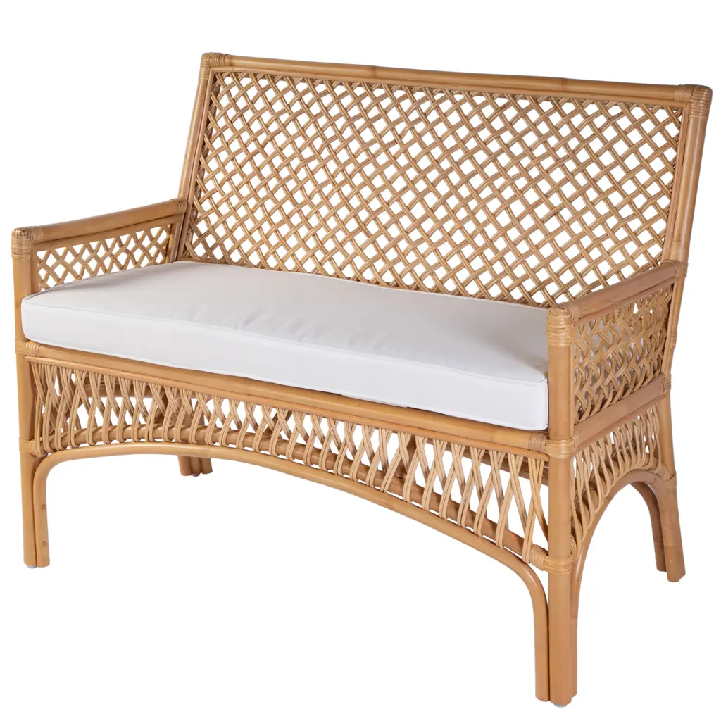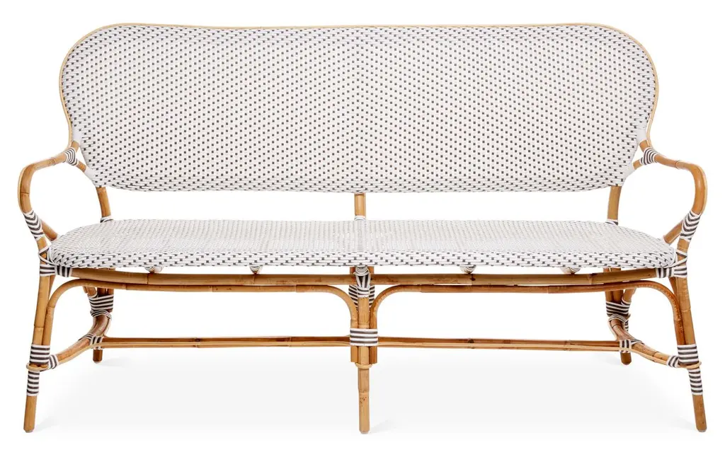 This bench is bolstered to a rattan frame and wrapped in Artfibre--an easy-to-clean cord. . We love how woven white-and-brown accents add a pop of pattern and contrast to the exposed frame. Suitable for indoor use only.