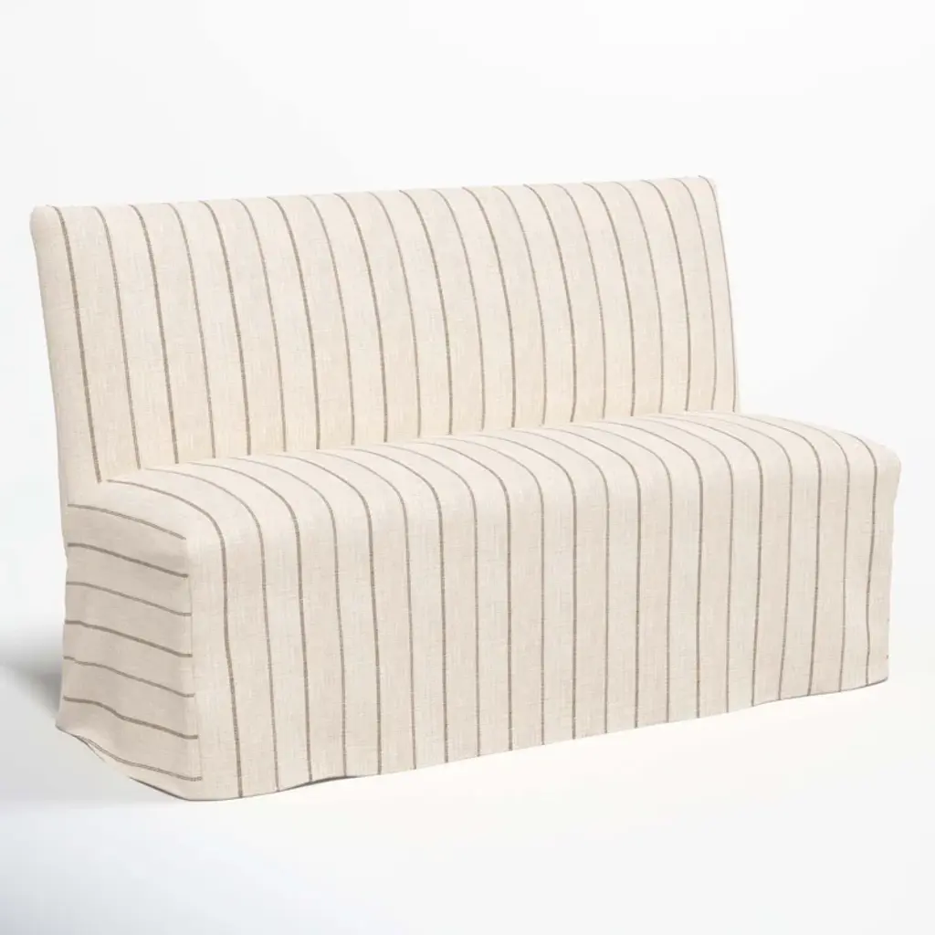 This dining banquette is perfect around your table or add to your entry way for additional seating. The removeable slipcover features stunning conversational fabric. In addition, the armless construction makes it a perfect choice for dining areas both large and small.