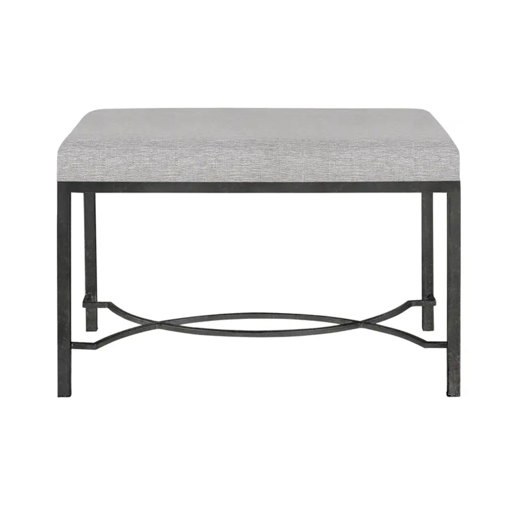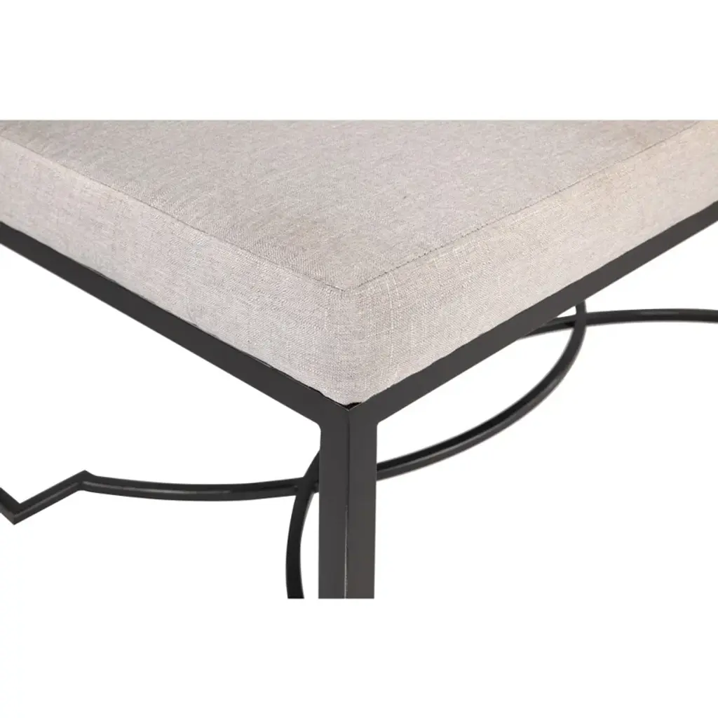 Slide this stool up to a dining table or place it at the foot of the bed in a bedroom. This stool features a sleek base, combined with four slim rubber-capped legs, joined by an entwined cross-brace support. Rest comfortably on a comfortable thick cushion as you dine or take off your shoes after a long day.