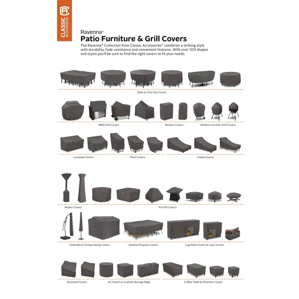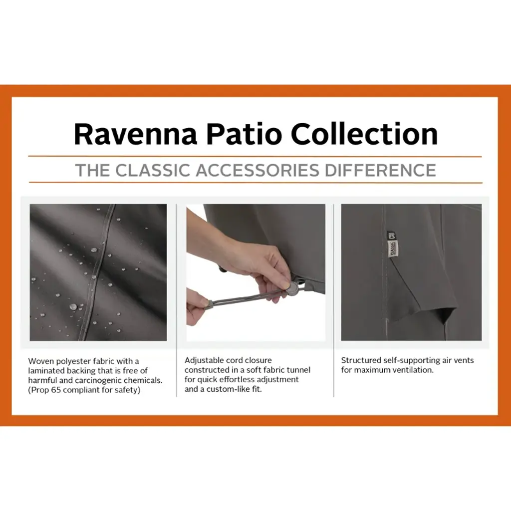 The Ravenna® Collection from Classic Accessories combines convenient features with durable construction and handsome looks. Time spent with family and friends will be safe for years to come with covers from the Ravenna® Collection by Classic Accessories. When you buy a Classic Accessories grill or patio furniture cover you are not just getting a cover; you’re also purchasing peace of mind. Not only will your grill and patio furniture be protected from the elements, but you’ll be protected with the easiest warranty in the industry. If your product fails within the warranty period, look for us online and take advantage of our Hassle-Free warranty program supported by our US-based customer service team.