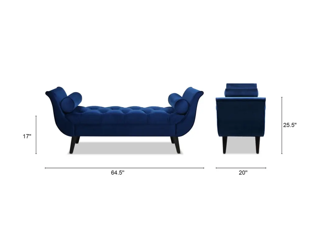 The Alma Collection by Jennifer Taylor Home is the perfect addition to any living space looking to add a bit of a modern flair. The Alma is upholstered with high-quality fabric and the solid wood frame is made from kiln-dried birch, which provides exceptional support and stability. Beautifully handmade with dramatic flared arms, hand- tufted buttons on the seating surface and two matching bolster pillows. Whether it’s used as additional seating for guests or just to spruce up your home decor, this bench brings class and lounging comfort to any room in the home.
