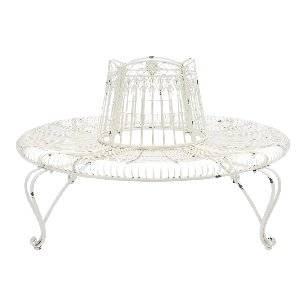This romantic Joella wrought iron outdoor tree bench adds a whimsical touch to any estate. Designed with an antique white finish on its wrought iron scrollwork, Joella creates an instant shaded oasis by any greenery. Ideal for adding extra seating in the garden and timeless charm to any outdoor living area.
