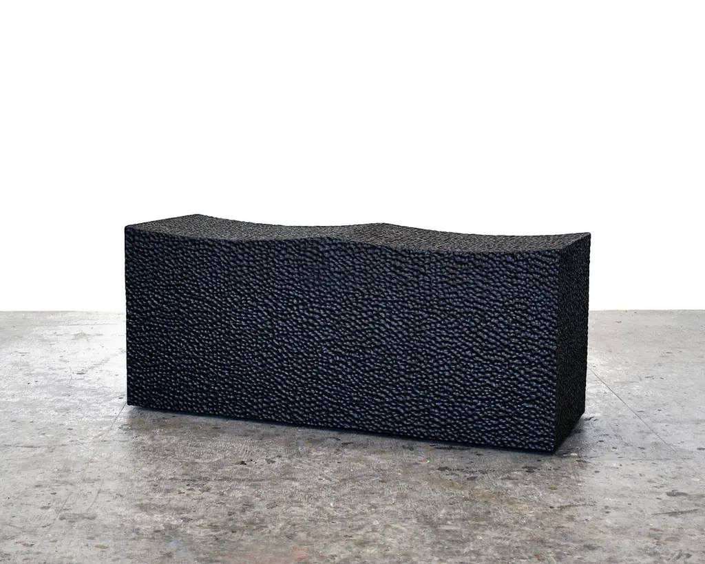 This monolithic piece from John Eric Byers merges bold, modern geometries with traditional craft. The wood is hand-carved and lacquered with a distinctive textured pattern to give a sophisticated finish to a simplified silhouette. Available as a bench for two or three or a stool for one.John Eric Byers is an artist/designer/craftsman who works exclusively with wood. The wood medium to Byers is like clay to a potter; he transforms the material through exceptional care and thoroughness, hand-tooling the surface and creating something completely unique. His works succeed due to somewhat of a contradiction. While the forms are strikingly geometric and minimal, they are contrasted with the superb craftsmanship and intricacy he brings to the material's outer surface. As noted by Grace Glueck in the New York Times, "The carved, patterned surfaces add considerable interest to his simplified forms, as does his exquisite attention to detail." A former student of Wendell Castle, John's work is guided by purity of form, structure, and surface texture, as well as a great respect for the materials he works with.John Eric Byers is an American artist with works in the permanent collections of the Museum of Arts and Design in New York and the Smithsonian American Art Museum in Washington, D.C. Numerous awards include the Louis Comfort Tiffany Foundation Award and inclusion in the Smithsonian's Archives of American Arts.