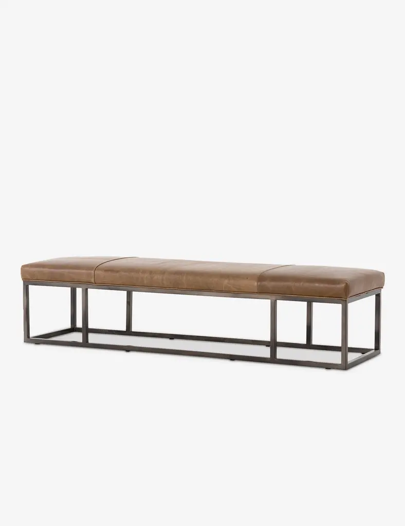 A modern piece that blends with a variety of aesthetics, this leather-upholstered bench can be styled in industrial entryways, contemporary living rooms, and at the foot of your bed, too.