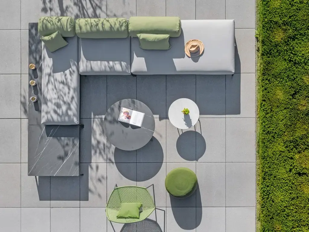 Thanks to the flexible, modular placement of the side and back sections, the Kairos seating elements can be freely configured as a bench, lounger, recamiere or sofa. Outdoor living can be this beautiful and flexible.With Kairos fischer möbel presents a lounge concept with a perfect combination of outdoor materials. Weather resitant fabrics are filled with a soft cushion based on a solid stainless steel frame. The lounge offers best seating comfort and impresses with its flexibility. The back- and armrests are quickly and easily assembled. In this way, entire seating landscapes can be created or rearranged in no time.However, Kairos also convinces as a single sofa or a chaise lounge. The cosy and casual lounge invites to relax. Premium Quality Made in Germany.Classic, modern and timeless - designed and made in Germany.