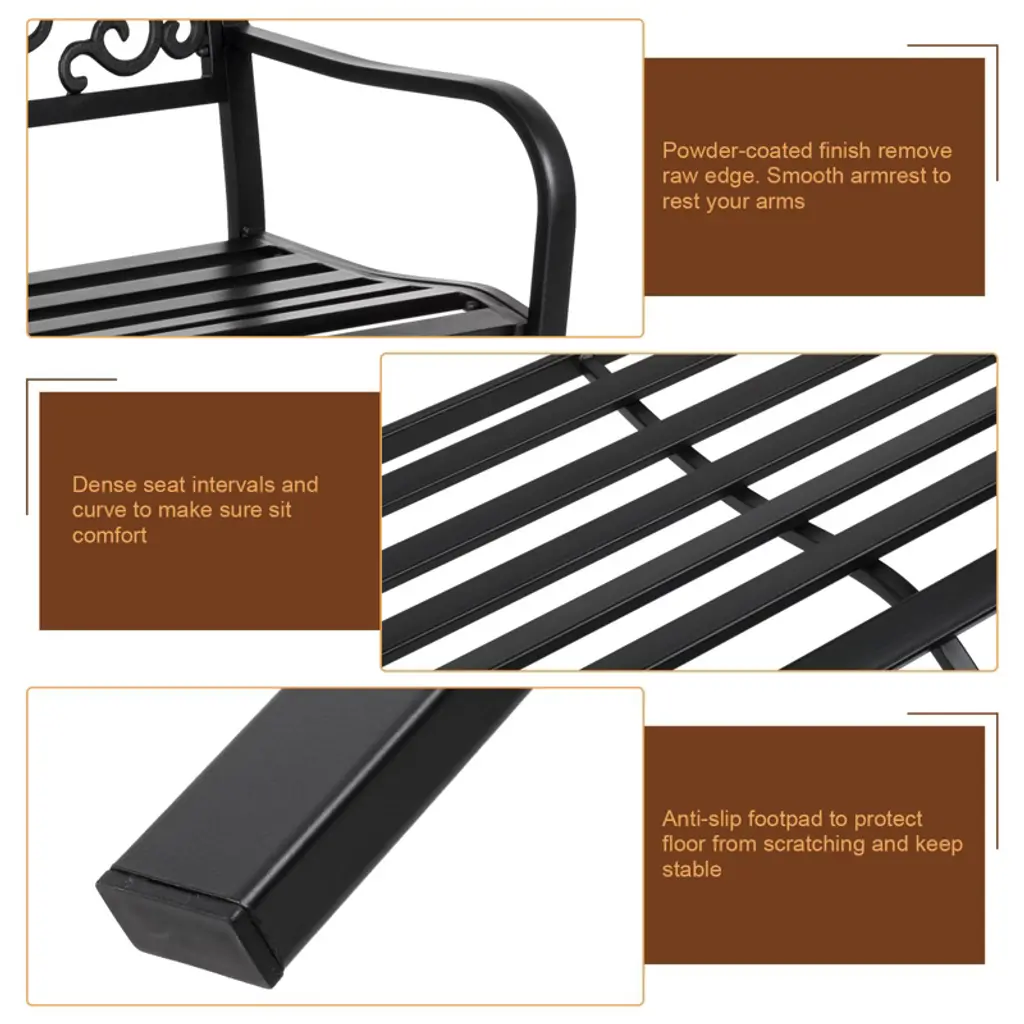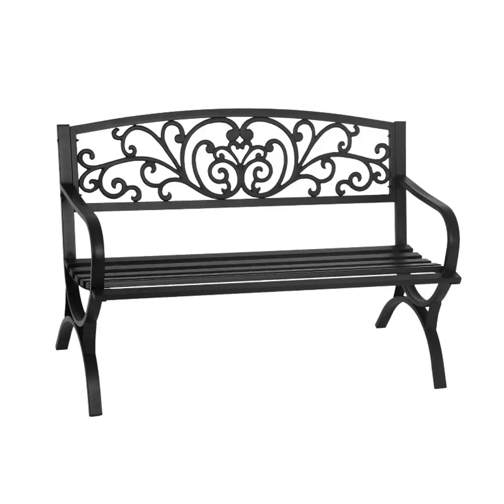 Karl Home | 47 In. Black Iron Outdoor Bench Floral Backrest