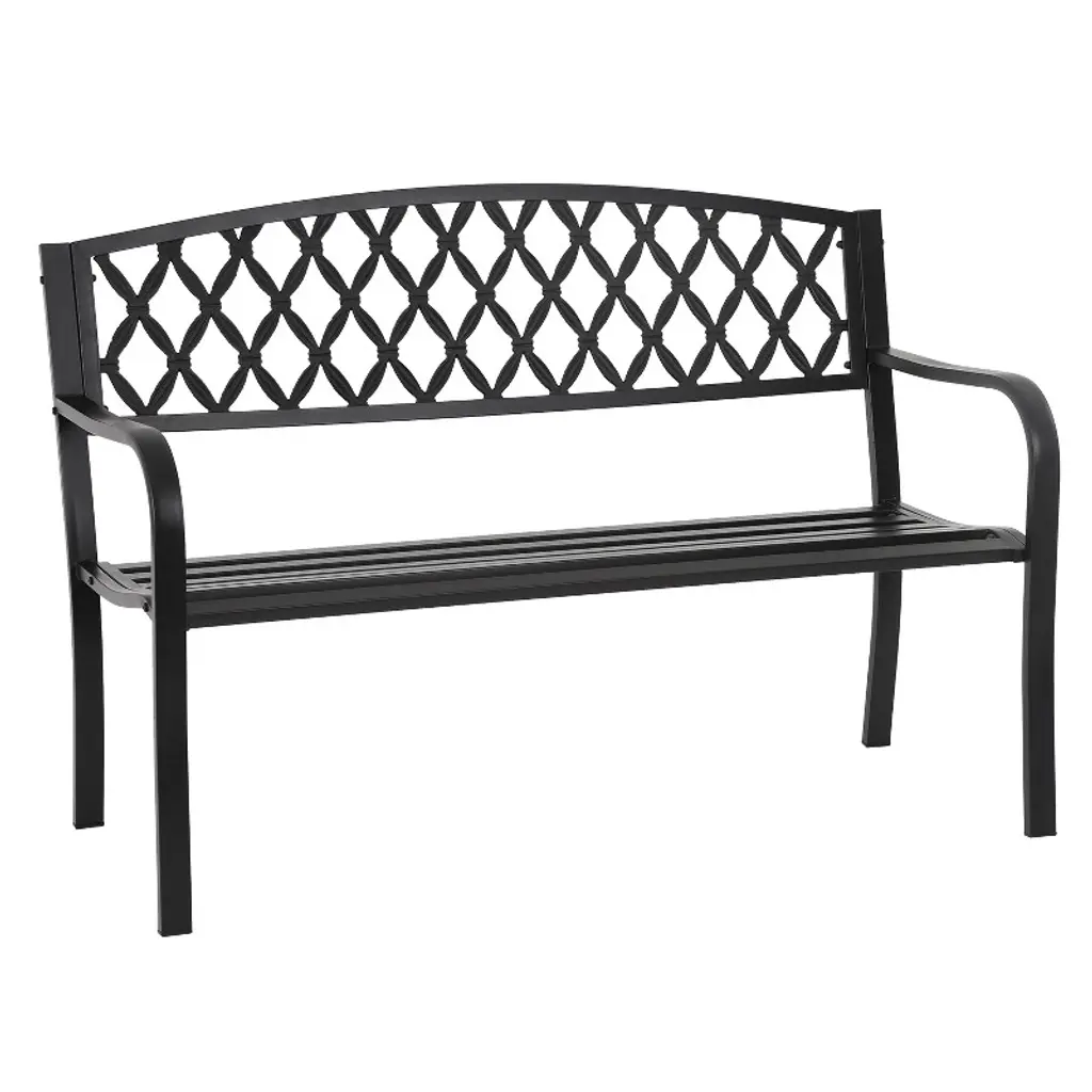 This beautifully designed powder coated bench will add elegance to your front or backyard, which will be a great addition to garden or make a completion for your path. This bench features powder-coat steel construction to deliver durability and light weight, and the antique finish adds an attractive look to your patio or deck. The stylish design on the backrest provides a stylish look, and the bench is easy to assemble. Beautifully designed powder coated bench will add elegance to your front or backyard, ideal for along a path, under a tree, among the flowers or in your favorite peaceful spot.
