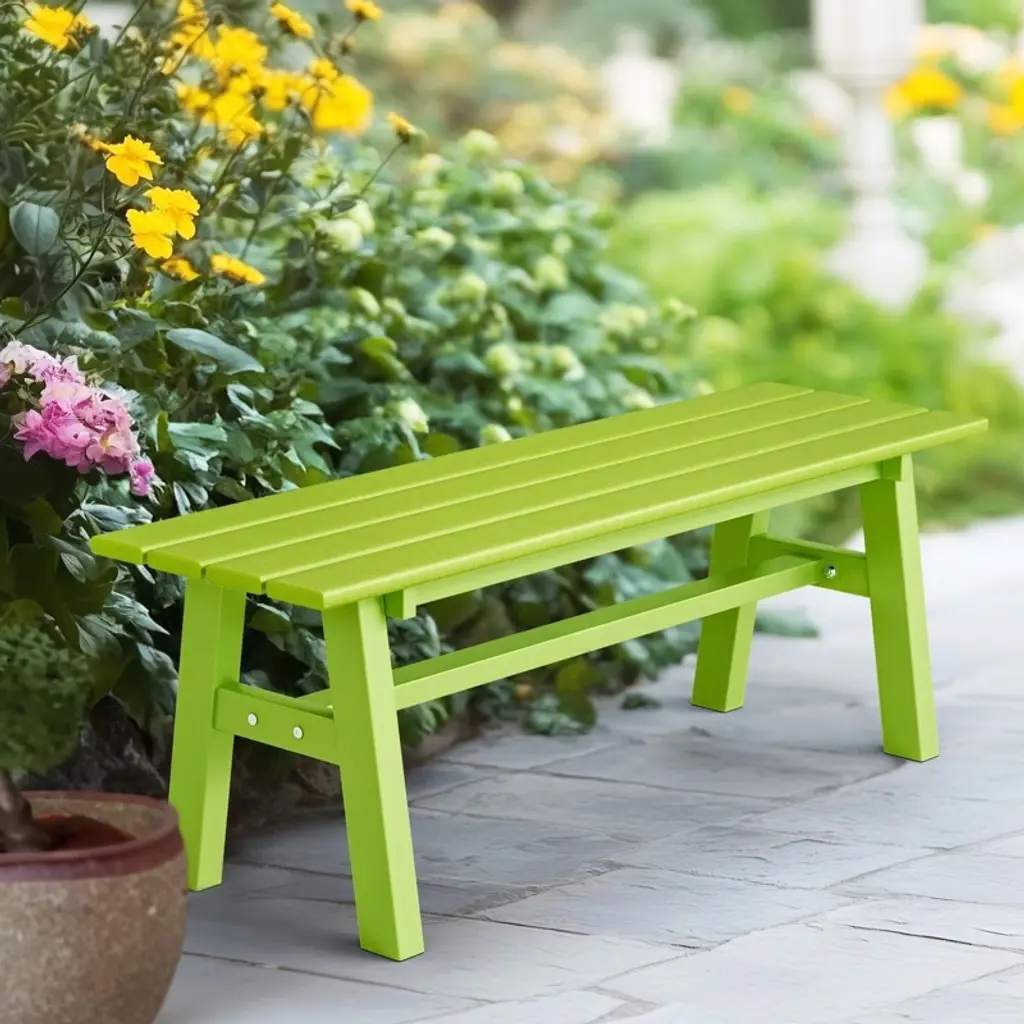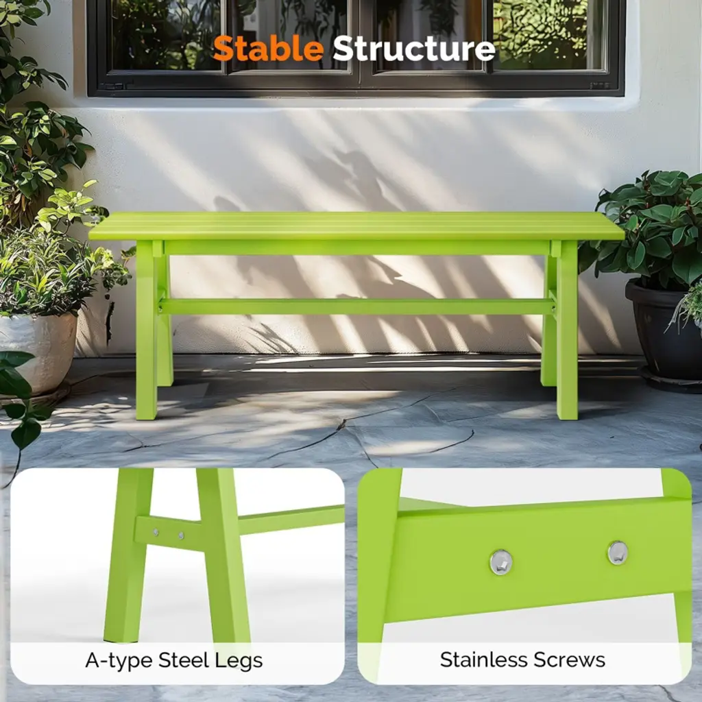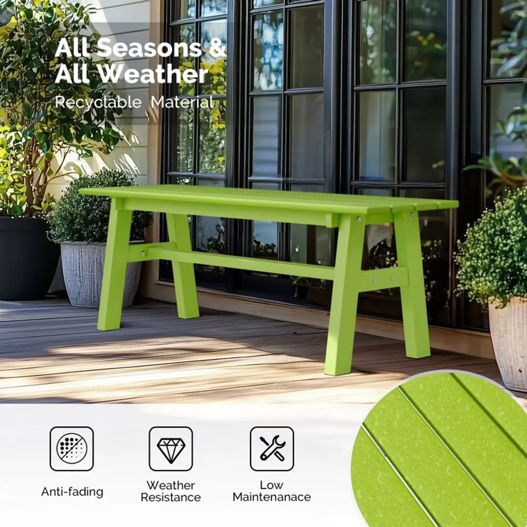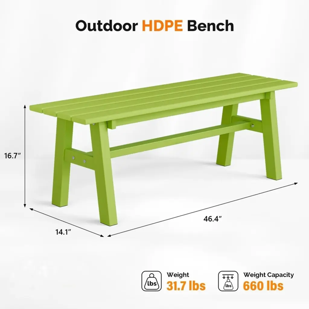 Elevate your outdoor living space with our stylish and durable 48 in. HDPE Patio Bench with Metal Legs. Crafted to withstand the elements while offering unparalleled comfort, this bench is the perfect addition to any garden, patio, or front porch. With its sleek design and robust construction, it promises to be a cherished piece of outdoor furniture for years to come.