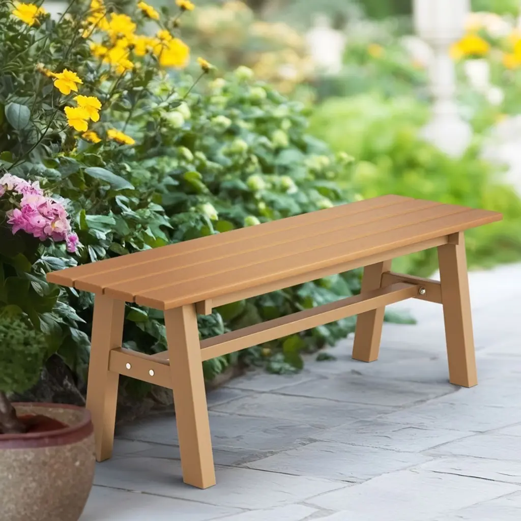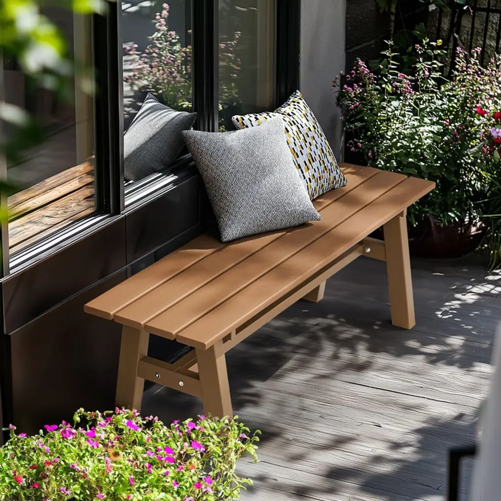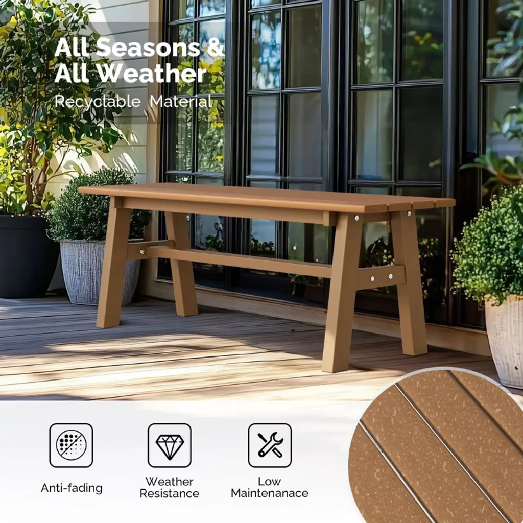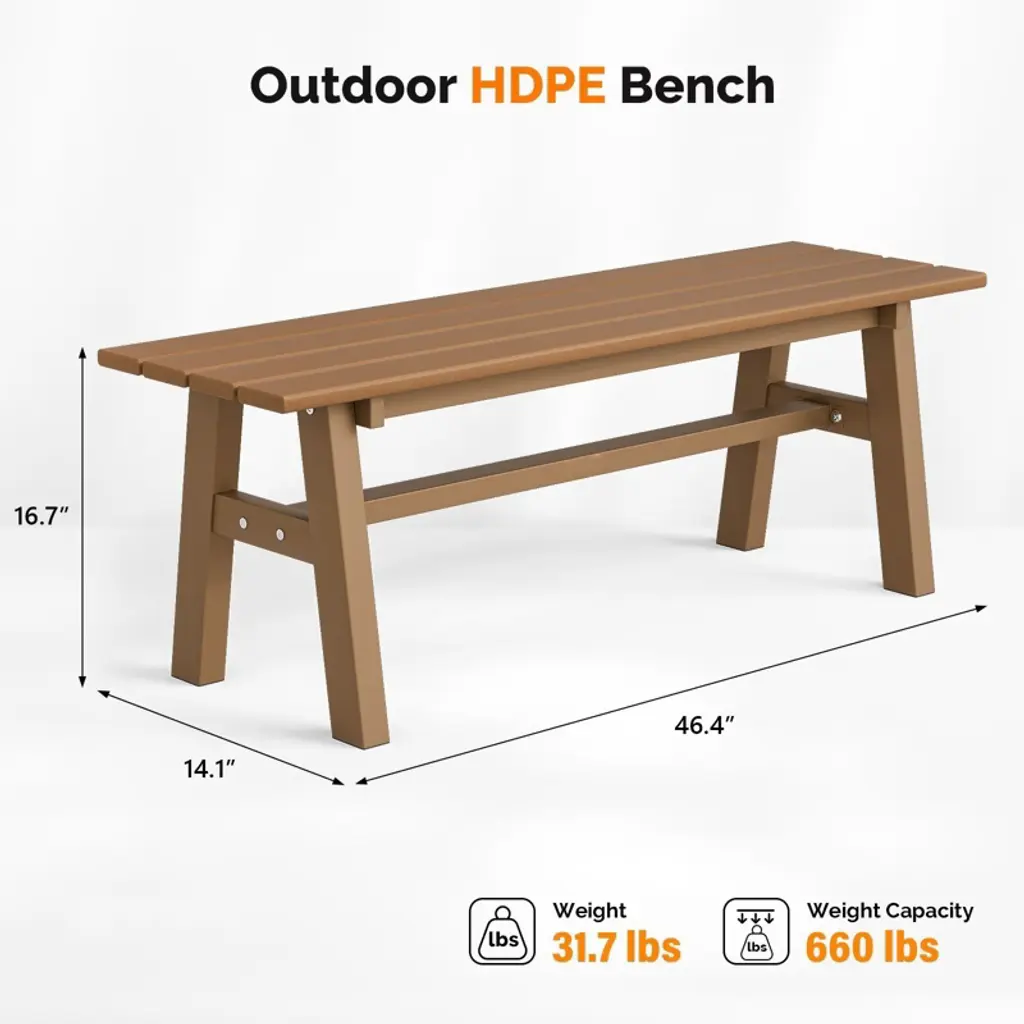 Elevate your outdoor living space with our stylish and durable 48 in. HDPE Patio Bench with Metal Legs. Crafted to withstand the elements while offering unparalleled comfort, this bench is the perfect addition to any garden, patio, or front porch. With its sleek design and robust construction, it promises to be a cherished piece of outdoor furniture for years to come.