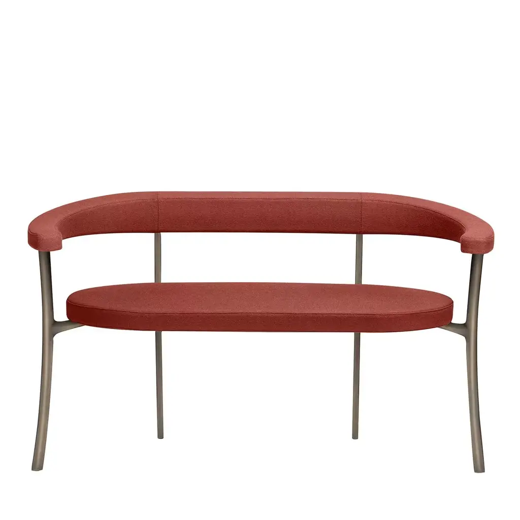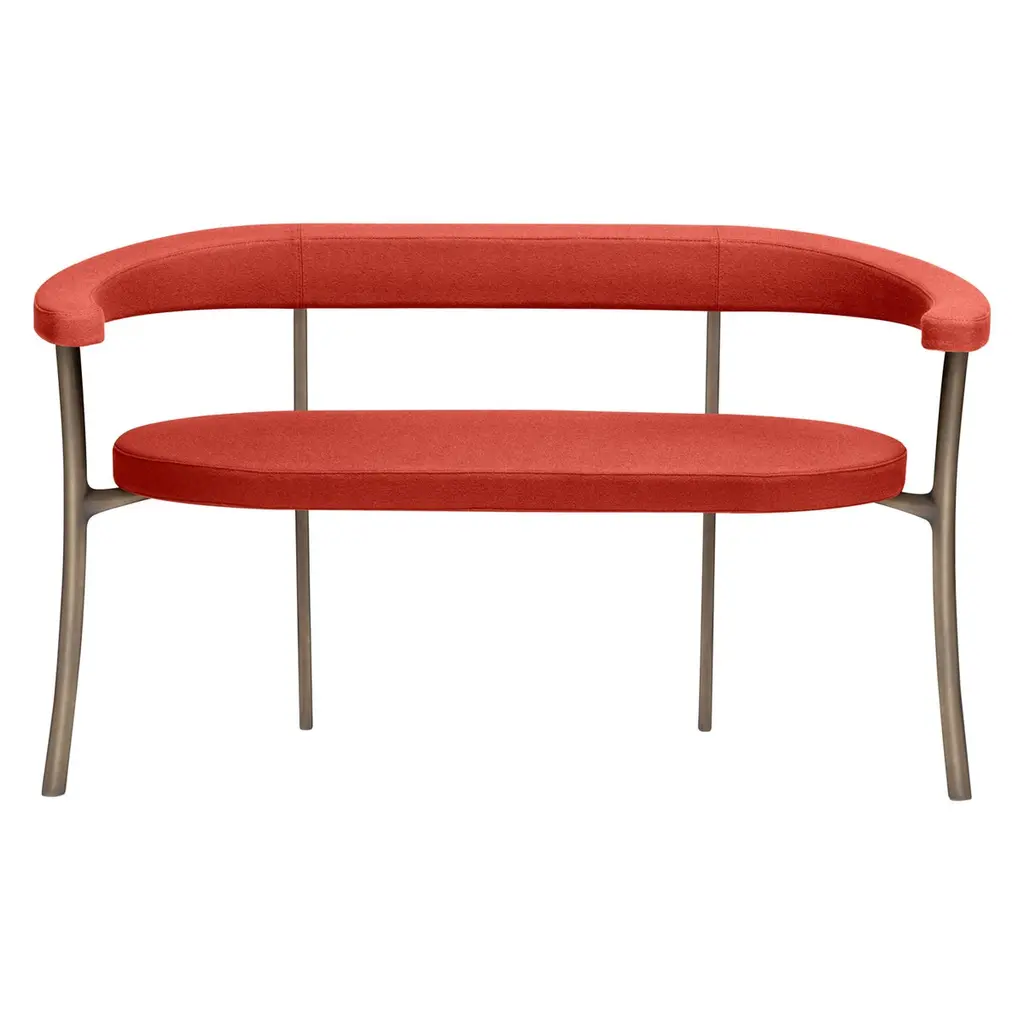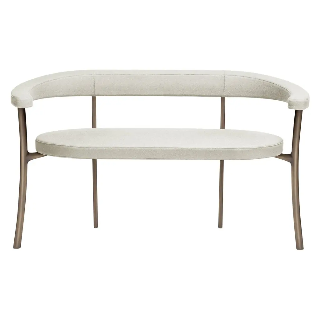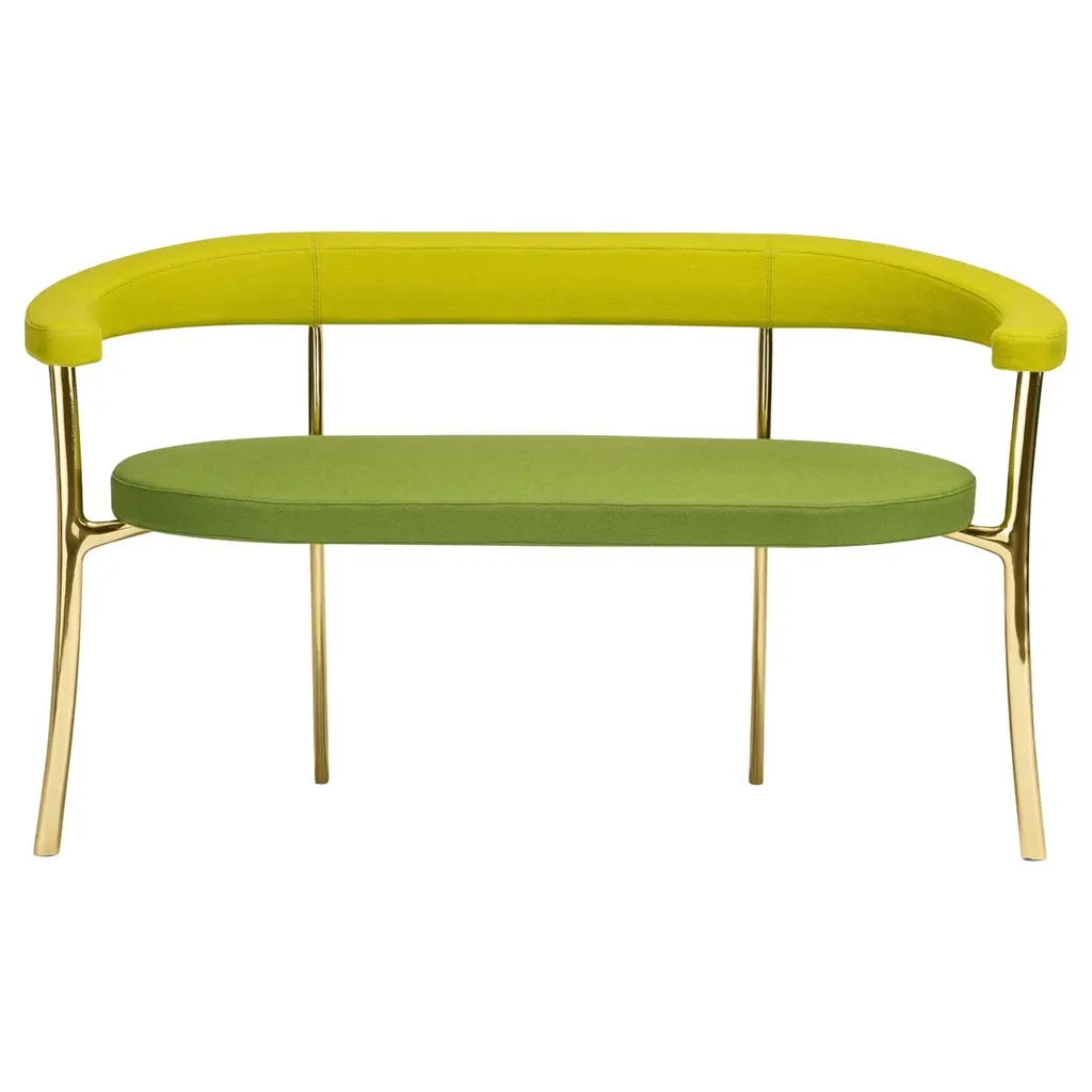 The Katana bench is the perfect combination of tradition and cutting-edge contemporary design. This elegant piece of furniture comes in a burnished brass structure supporting a comfortable seat and enveloping back and armrests upholstered in green nubuck leather. Precious and luxurious, this small sofa has been designed by the architect Paolo Rizzatto and produced by Ghidini 1961. Dimensions: 120 x 53 x 66 cm. For the US market, please contact the Concierge for CAL TB 117 certified fabrics.