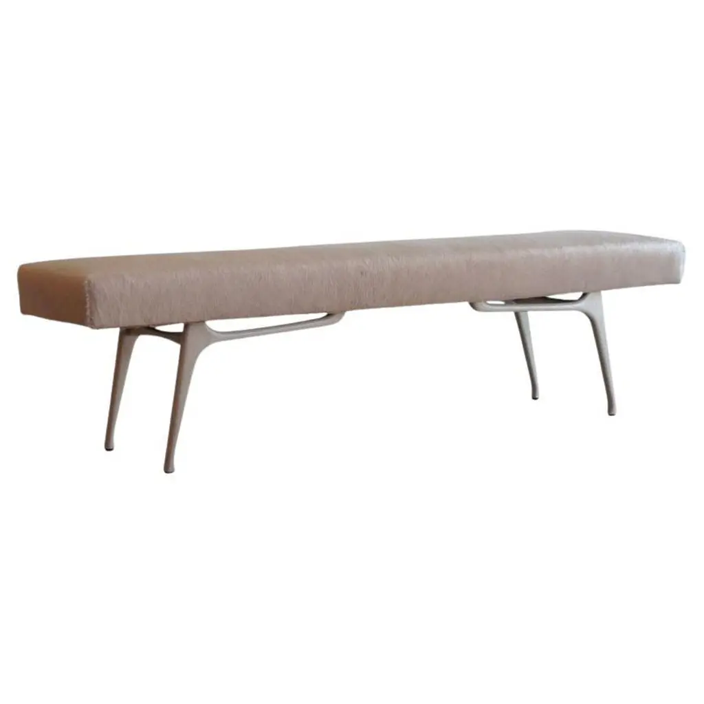 Katana Bench In Grey Fabric With Brown Burnished Brass By Paolo Rizzatto