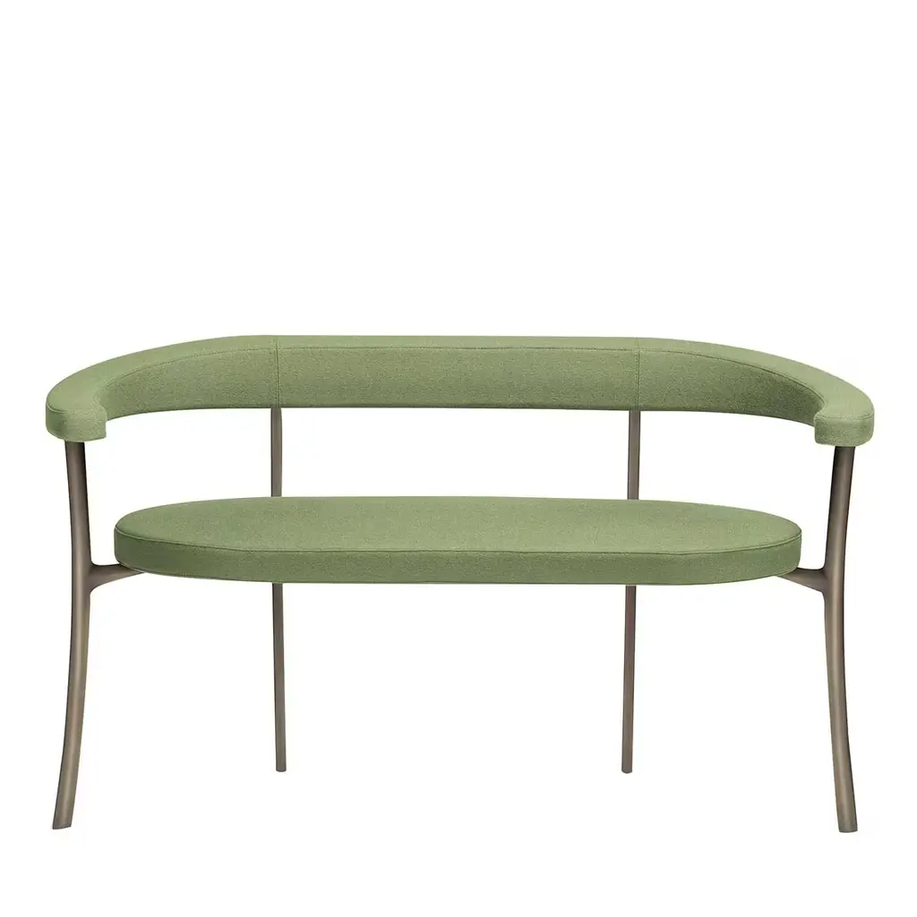 The Katana bench is the perfect combination of tradition and cutting-edge contemporary design. This elegant piece of furniture comes in a burnished brass structure supporting a comfortable seat and enveloping back and armrests upholstered in white nubuck leather. Precious and luxurious, this bench has been designed by the architect Paolo Rizzatto and produced by Ghidini 1961. Dimensions: 120 x 53 x 66 cm. For the US market, please contact the Concierge for CAL TB 117 certified fabrics.