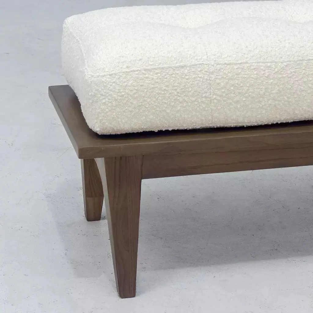 The bold Katsura Collection is inspired by the understated luxury of Asian heritage palace architecture that combines both feelings of modern and traditional design. This bench features solid Elm legs crafted with our BreathingJoinery™ system so precisely that no nails or screws are needed. The plush comfort of the fabric upholstered cushion on the extended wood base makes a sleek statement piece for your living room or entryway.Dimensions: 60”W x 16”D x 17”H