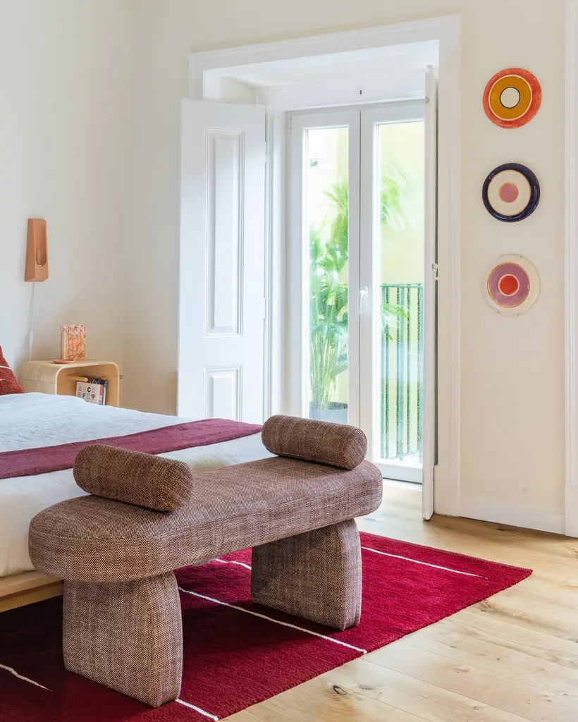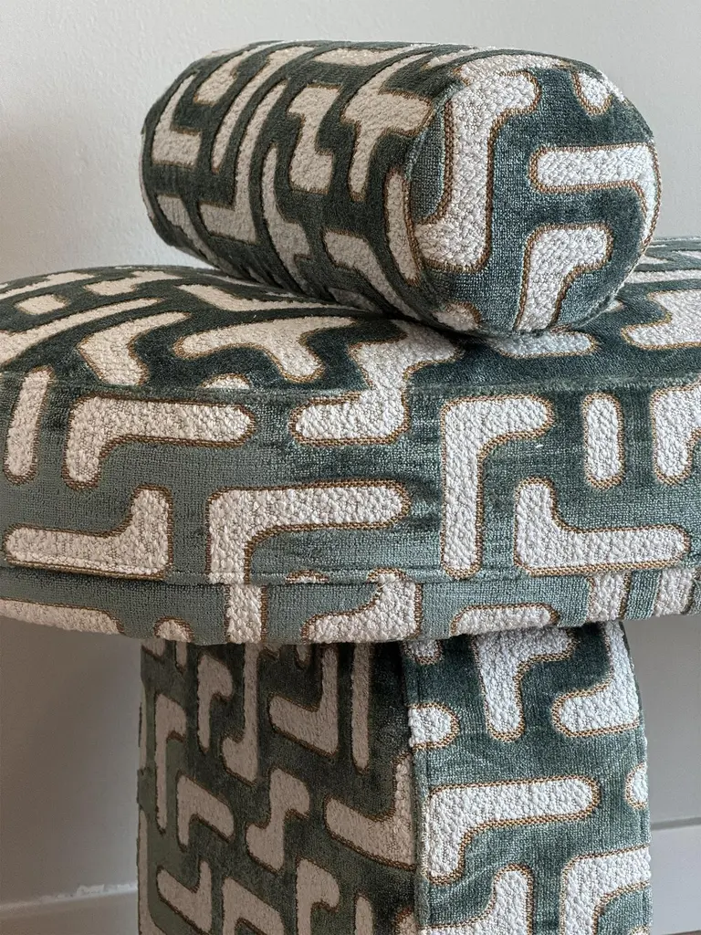 Kimi bench - Contemporary Upholstered Bench with Curved Silhouette Both functional and visually striking, the "Kimi" bench is a refined accent piece that seamlessly blends comfort and elegance. Featuring a fully upholstered curved silhouette, this sculptural design is enhanced by two plush cushions on top, offering both aesthetic appeal and ergonomic support.Perfect for bedrooms, living areas, or sophisticated lounge spaces, the "Kimi" bench embodies contemporary luxury with its soft curves and inviting form. Its versatile design makes it an ideal complement to a variety of interior styles, from modern to classic settings.Dimensions:Height: 18.90 in (48 cm)Width: 55.12 in (140 cm)Depth: 16.54 in (42 cm)