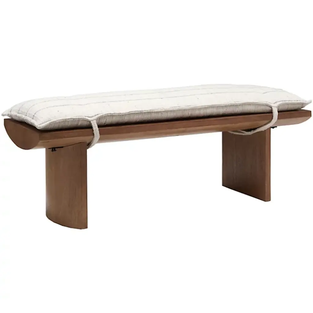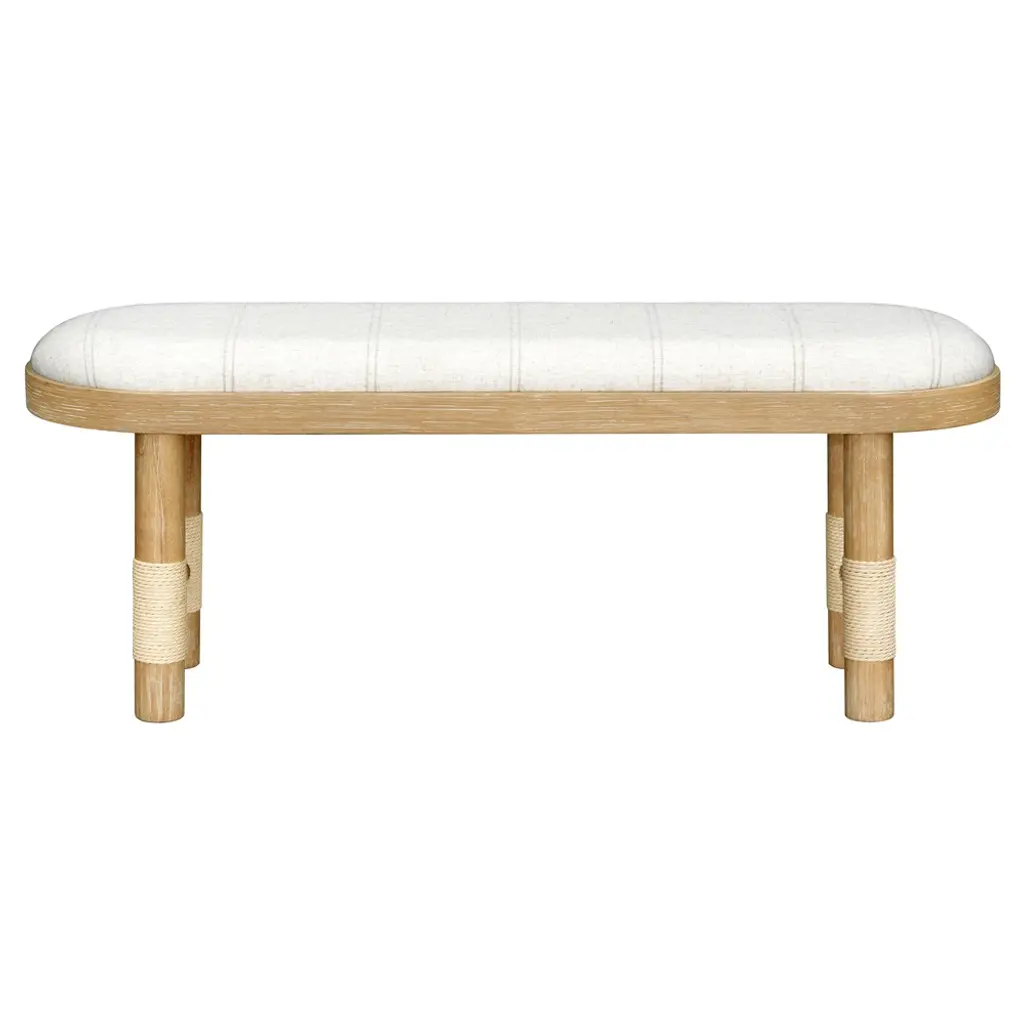This bench completes Kimua collection seating propositions. It has solid oak legs and back. Hand thatched tabouda straw seat.