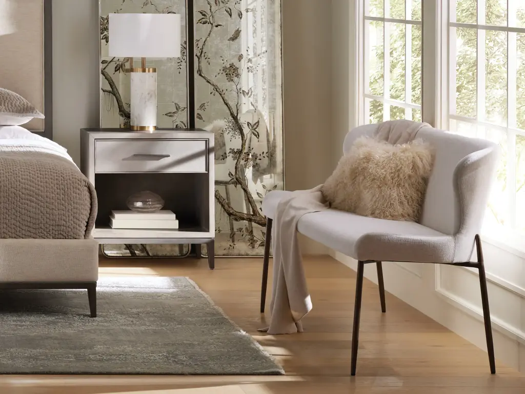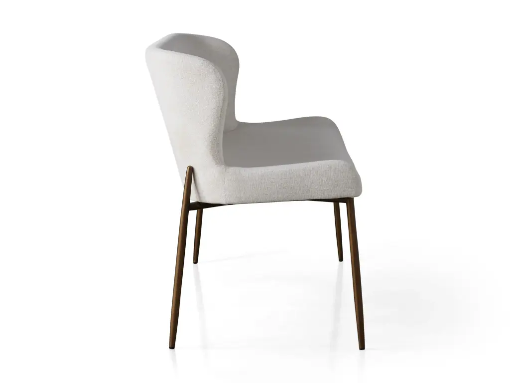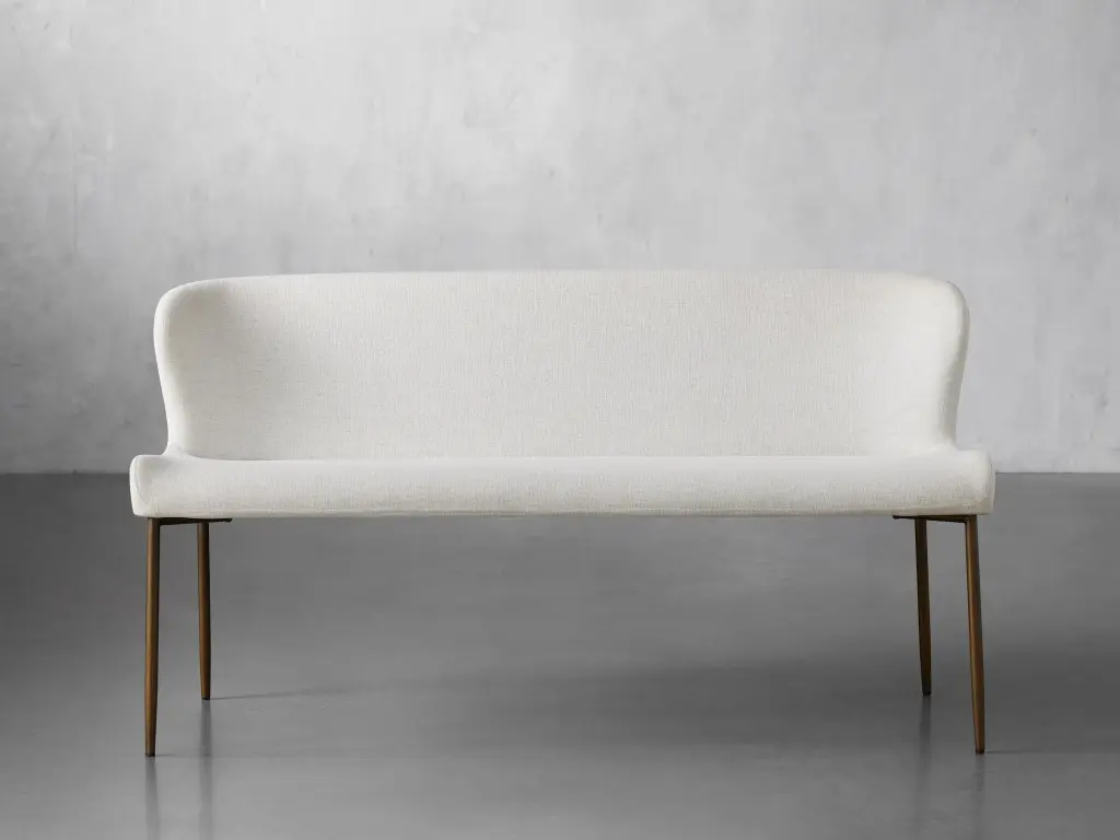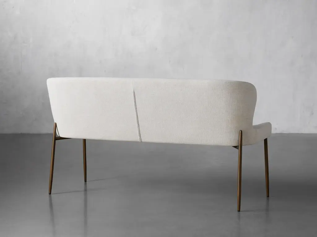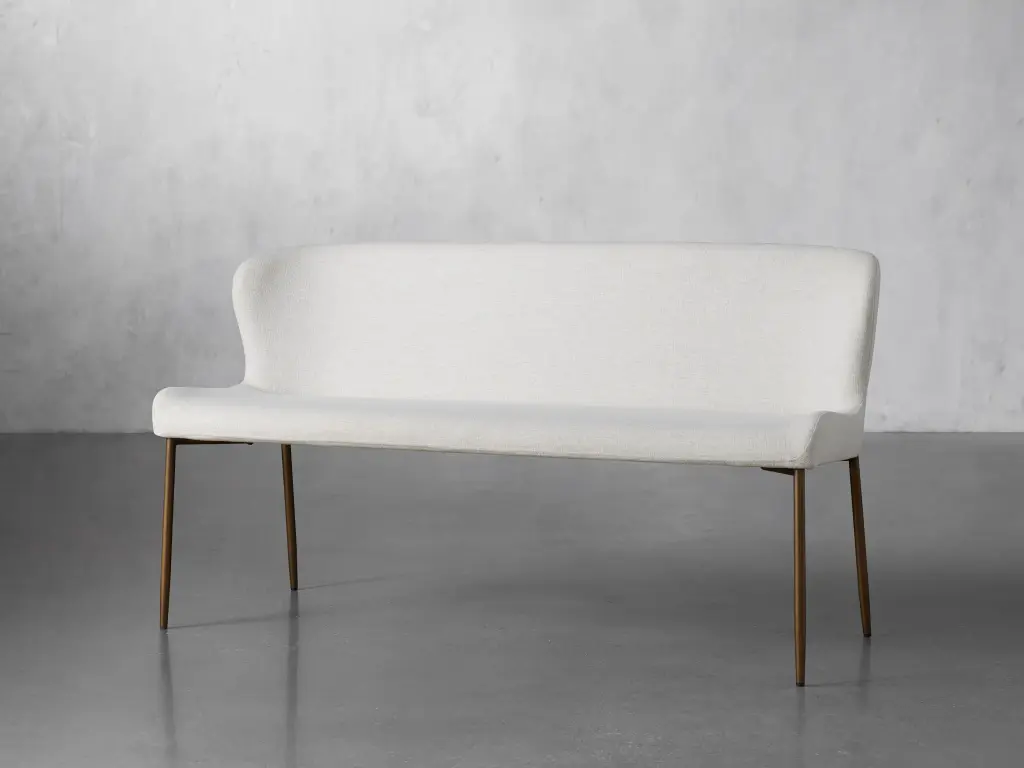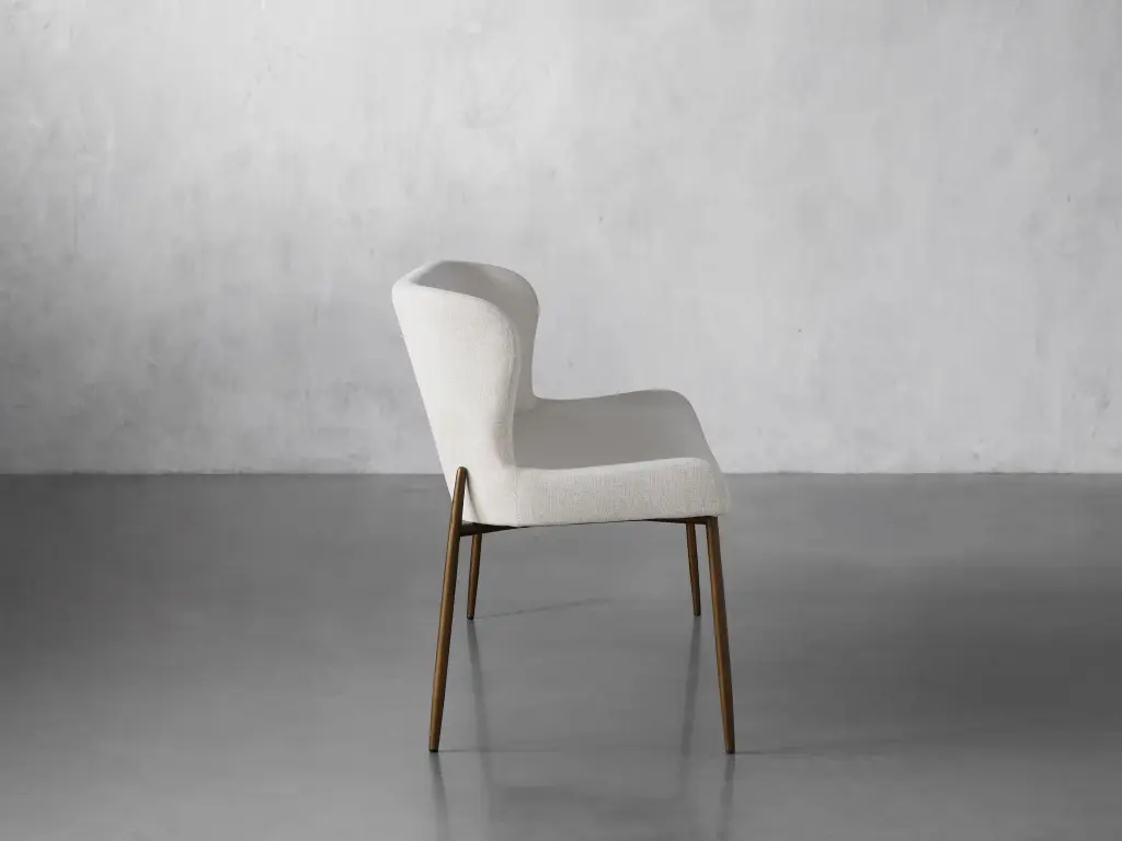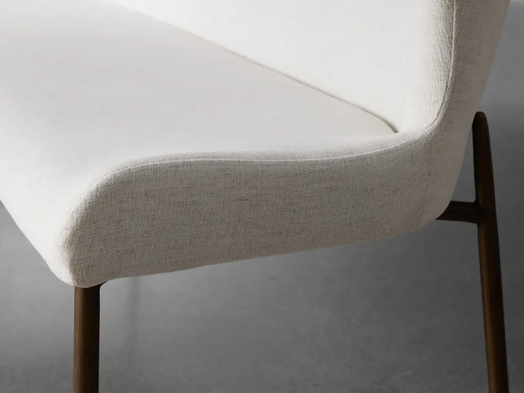 The sculpted silhouette of our Kirsten Dining Seating Collection embraces you with its elegant scoop seat and gently curved backrest. Generously upholstered in soft-yet-durable fabric, Kirsten's minimalistic iron frame adds modern comfort to any kitchen or dining space.