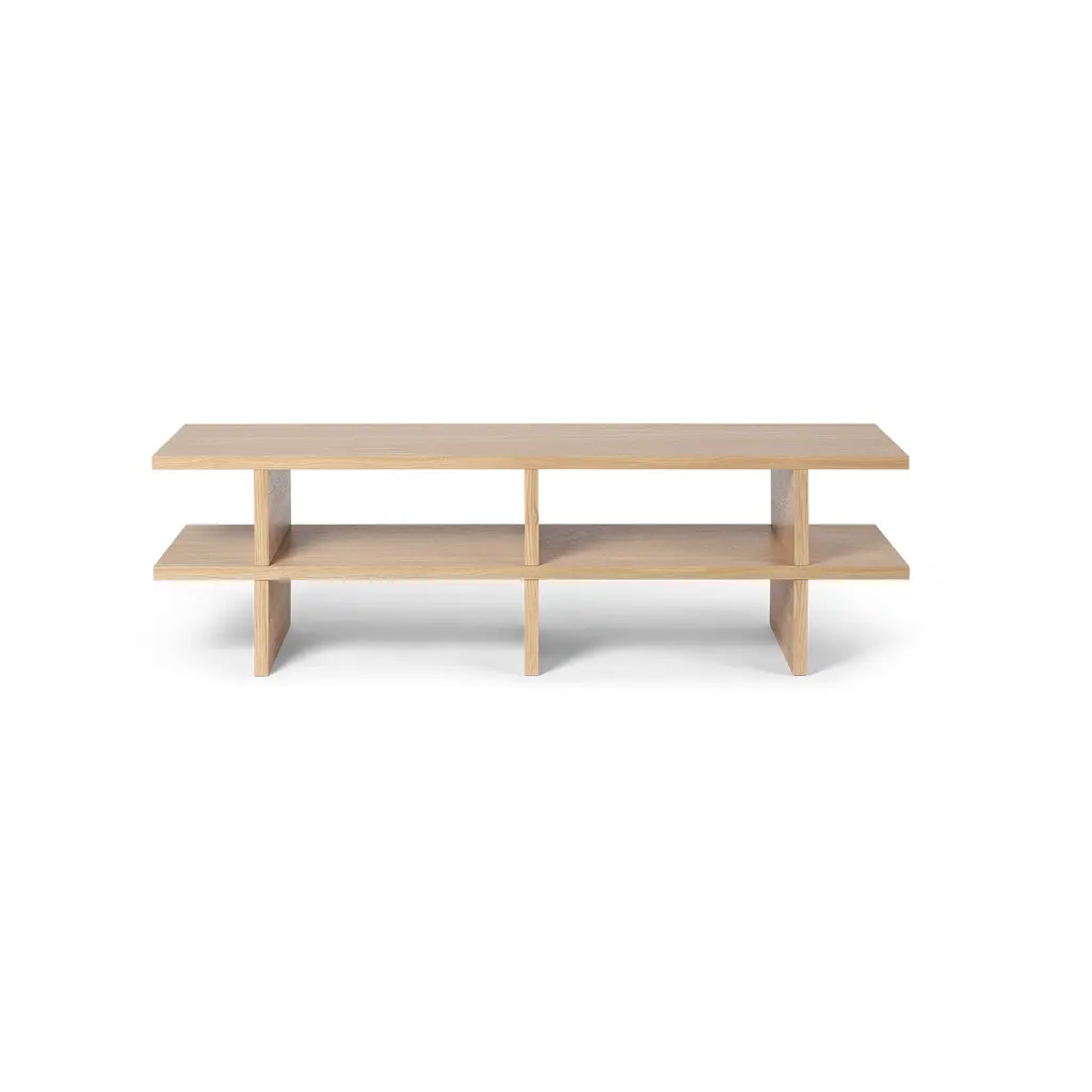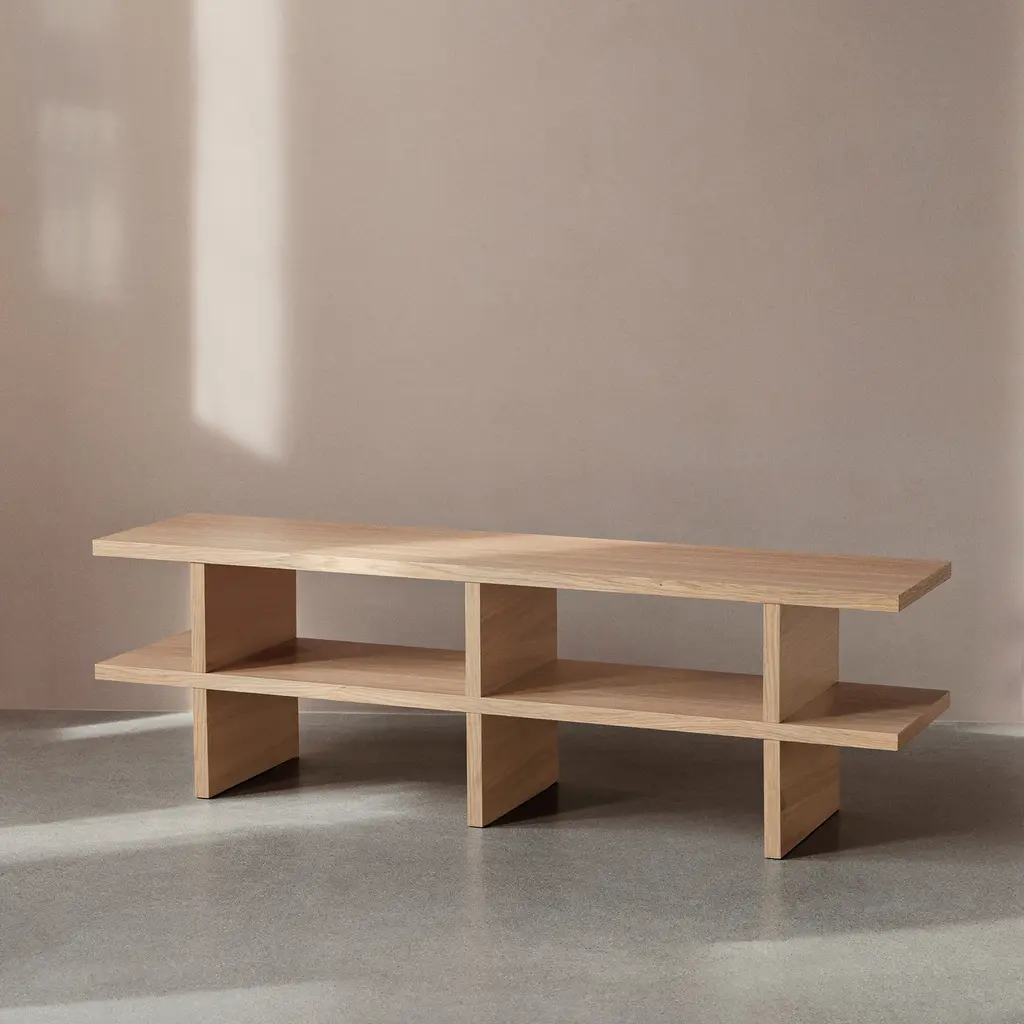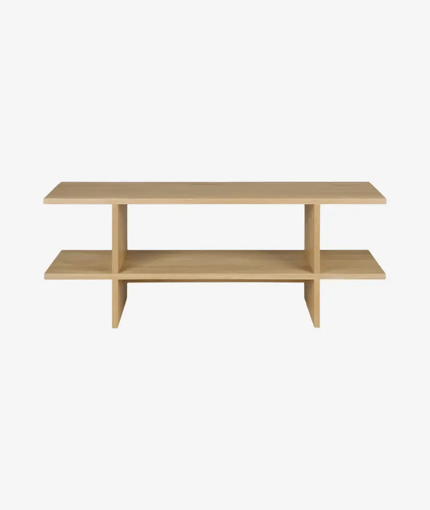 A multifunctional piece of furniture that draws inspiration from both Japanese and Scandinavian design, the Ferm Living Kona Bench offers the perfect combination of minimalist style and practical features. The design incorporates open storage beneath the seating area, providing a fantastic way to not only organize your home but to also enhance day-to-day comfort. For example, you can use the Kona Bench in a bedroom and place blankets or extra pillows on the shelves. In an entryway, you can use the shelving for shoes or accessories. In a living room, for books, gadgets and other items Made with a FSC-certified oak veneer and an MDF core, the Ferm Living Kona Bench is high-quality and durable. Other designs from the same collection are also available.