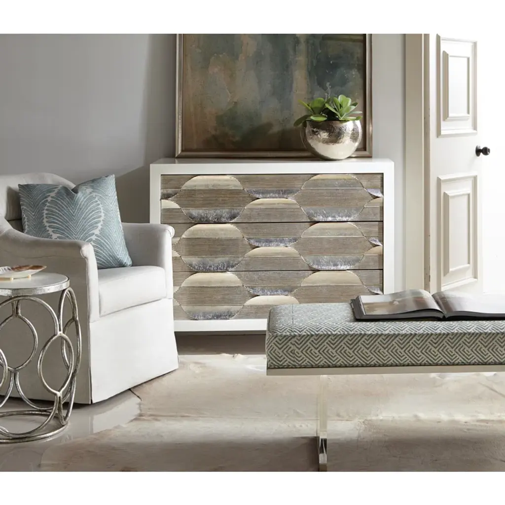 A soft landing at the start or end of the day, this multifunctional bench lends a sophisticated finishing touch. An artful interpretation of Euro-modern simplicity and balance, its minimalist base adds a metallic accent in smoked stainless steel paint. Perfect for the end of the bed, or as a sleek seat in the hall or entryway.