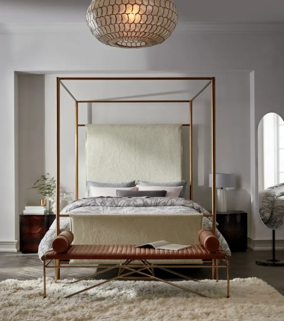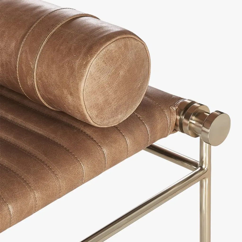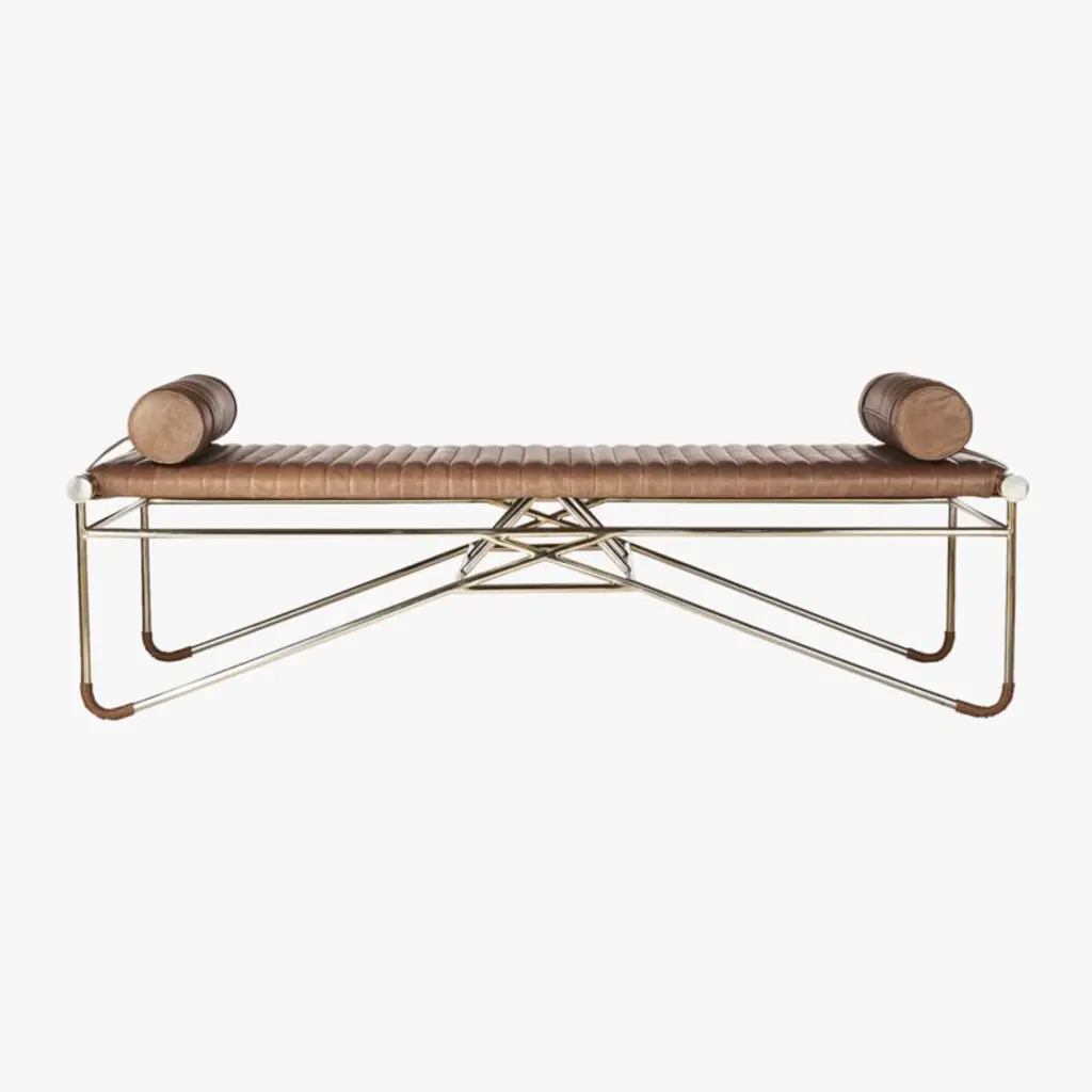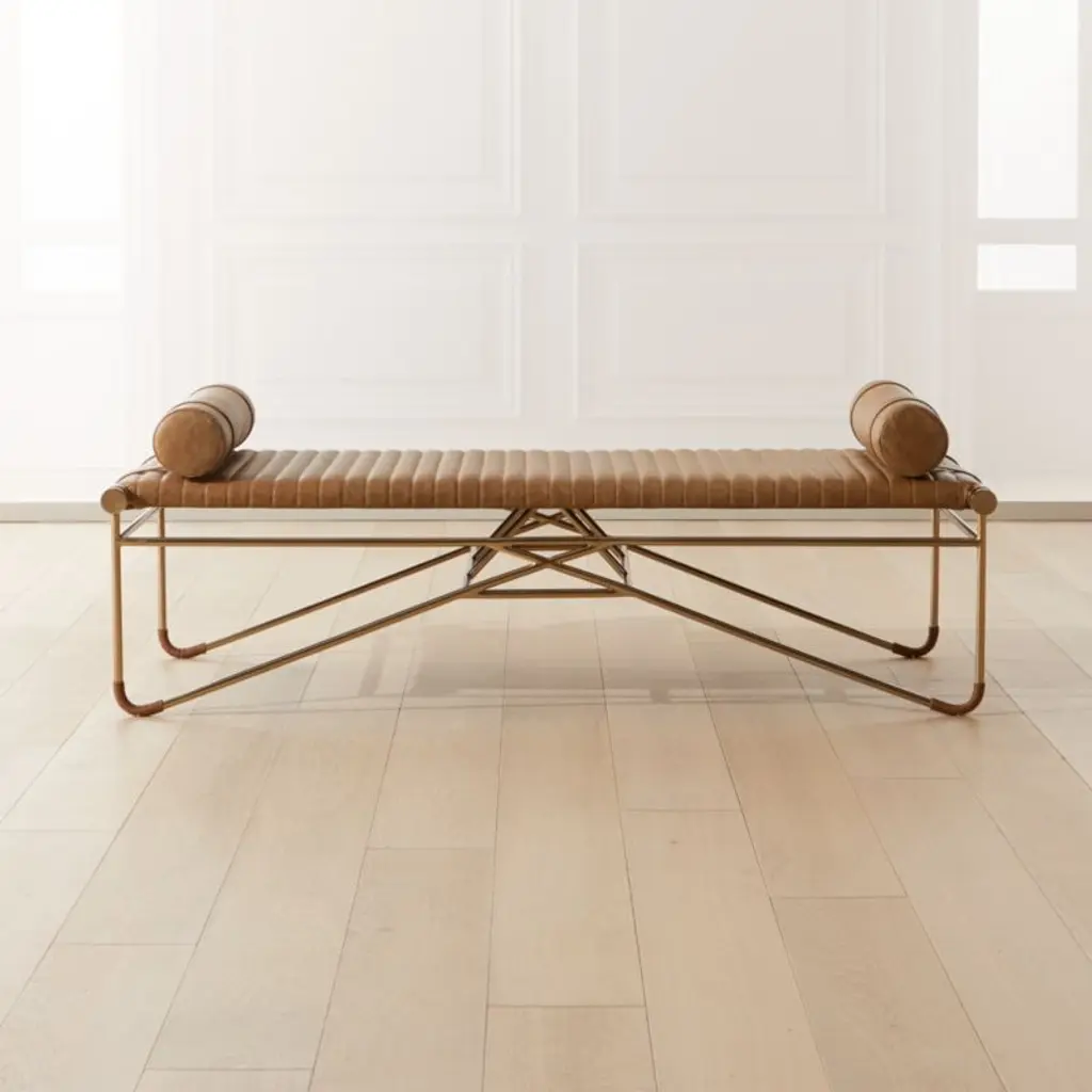 La Strizza 61" Saddle Leather Bench With Bolster Pillows