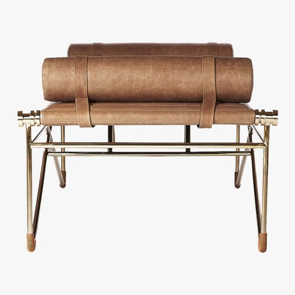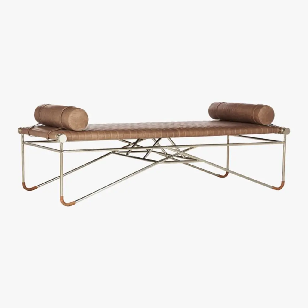 La Strizza basically translates to "the shrink bench," because if it was 1955 and you were getting analyzed at the psychiatrist, this is what you'd be lying on... in the chicest psychiatrist's office ever. Rich leather upholstery contrasts with simple, minimal bench frame for a modern look with hints of vintage and deco. Round bolster pillows on either end are removable for a versatile look. CB2 exclusive.
