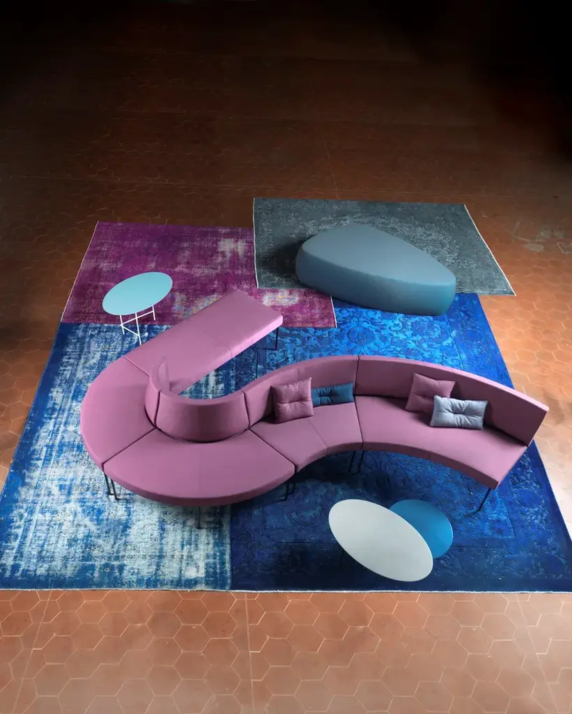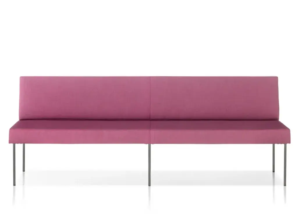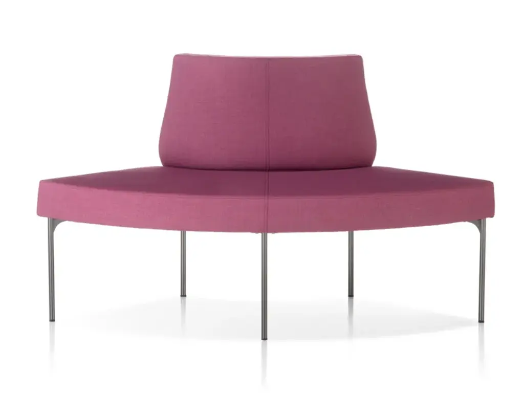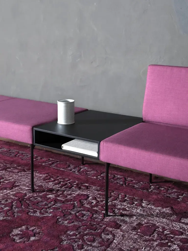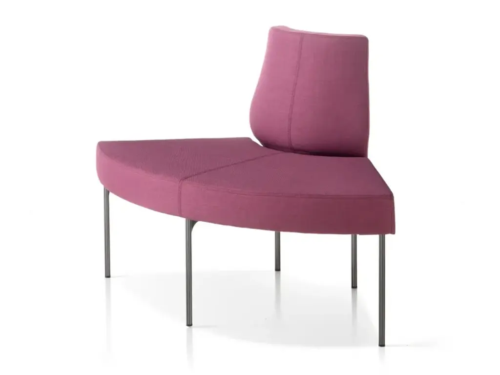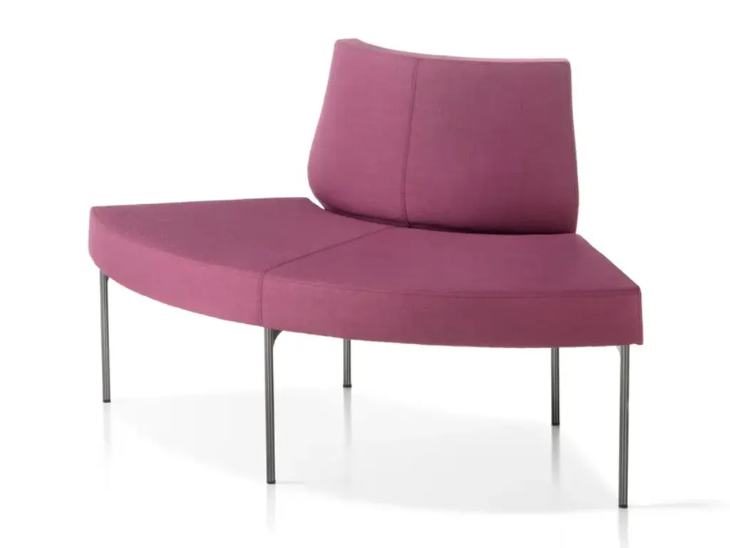 Laguna is a modular bench characterized by its thin lines and different, sinuous shapes. Simplicity, dynamism and versatility emerge as traits of a modular system that can be endlessly coordinated, combined and reconfigured to produce creative and light compositions as if they were sculptures. With its ability to easily communicate with corners and pillars, Laguna is a perfect minimal ecosystem for waiting areas and contract areas of the contemporary world. It is available in the 2 or 3 seater version, linear or curved. The curved model is available in two sizes and convexities. It is possible to accessorize with additional central or side tables.