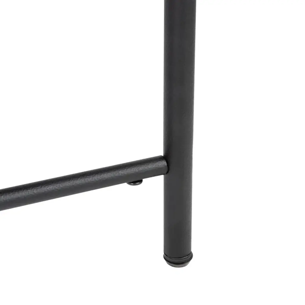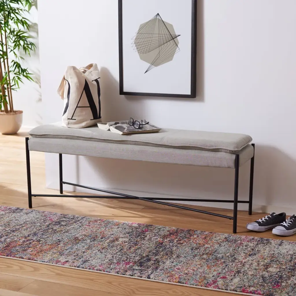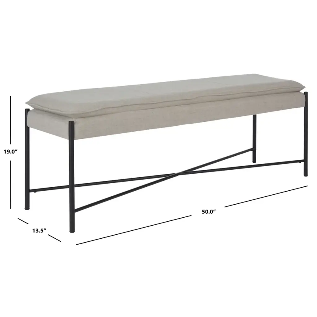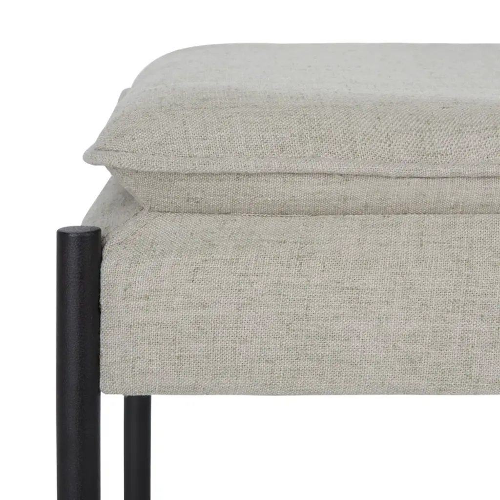 With its monochrome palette and minimalist design, this bench is a versatile addition to your entryway or bedroom. Its plush pillowtop seat is upholstered in linen with welted seams for extra dimension; it rests on slender metal legs with a black finish and a sturdy crossbar support.