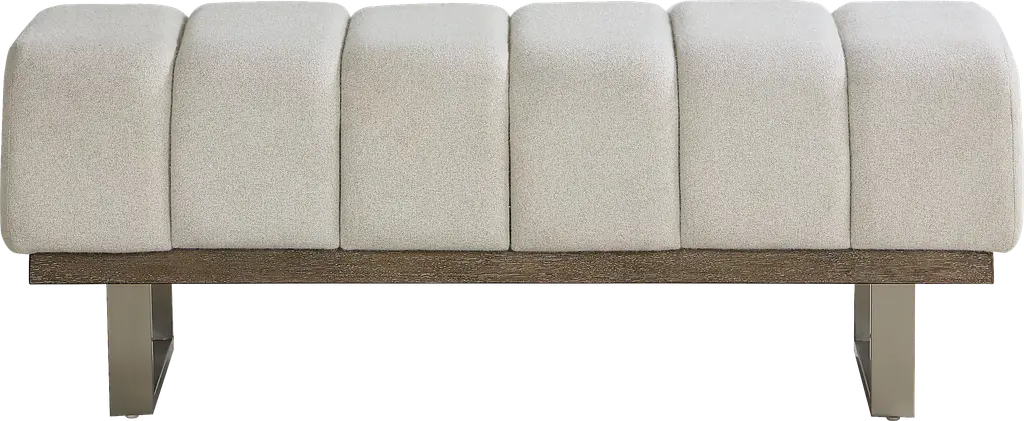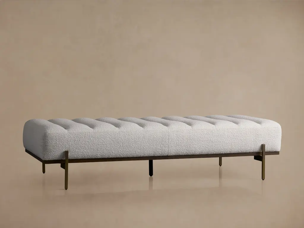 Crafted for exquisite comfort, our Lansing Collection features low-profile, open-ended designs. Upholstered textural boucle Performance Fabric benches are channel-stitched to create a plush, luxurious aesthetic, while the natural wood bases are accented with brass supports for added style and contrast.