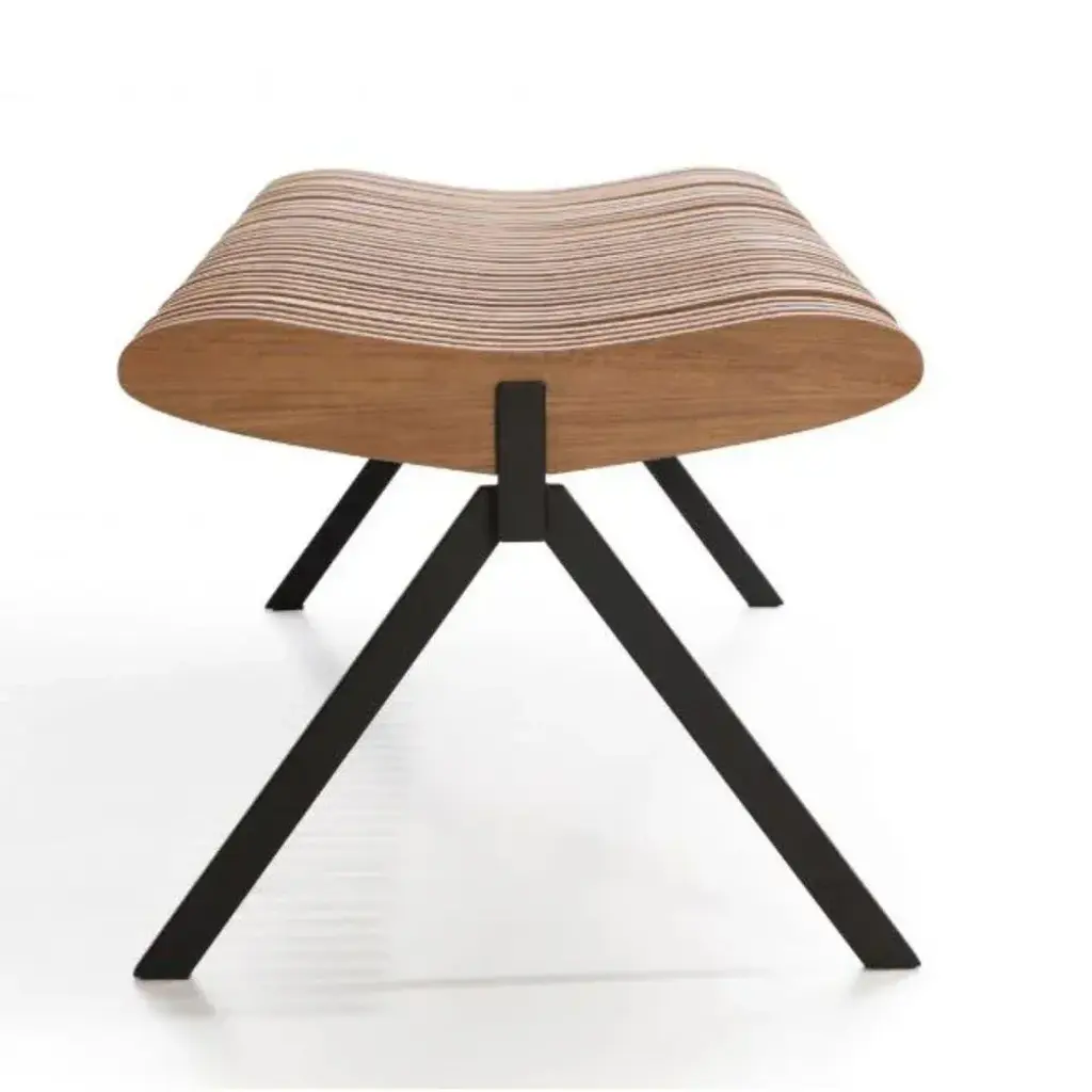 Large perlude teak bench by caroline voet dimensions: 50 x 190 x h 43 cm materials: teak may be available separately in oak natural, seating oak black, seating walnut natural. The prelude benches are assembled from top grade fsc-labelled wood, solid oak for indoor use, and teak for outdoor use, fixated to a minimal steel base frame lacquered black. By combining a sturdy metal base with the fluent and elegant lines of the repetitive wooden parts of the seating surface, the prelude bench creates a surprising visual effect while still keeping very comfortable. The prelude can be used as a free standing bench or as a seat to a table playing its role as resting point at home as well as in a commercial environment and the public space, by inviting in a subtle and elegant way to a conversation as a true prelude to a dialogue. Pu.