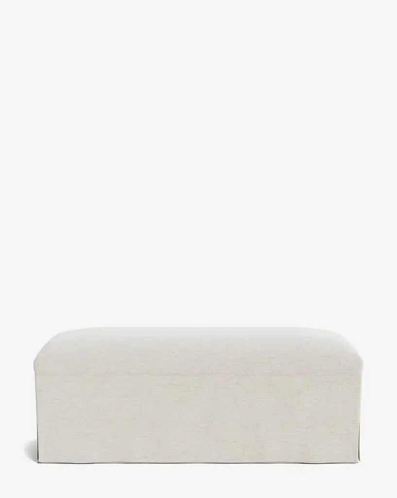 An updated take on a traditional design, our Latimer Bench features a fitted crown and faux slip skirt detailing. Soft and comfortable, the bench is a functional accent piece for your home styling. It is available in a classic yet playful Allspice Perennials Gingham or can be made-to-order with your choice of an array of high-quality fabrics.