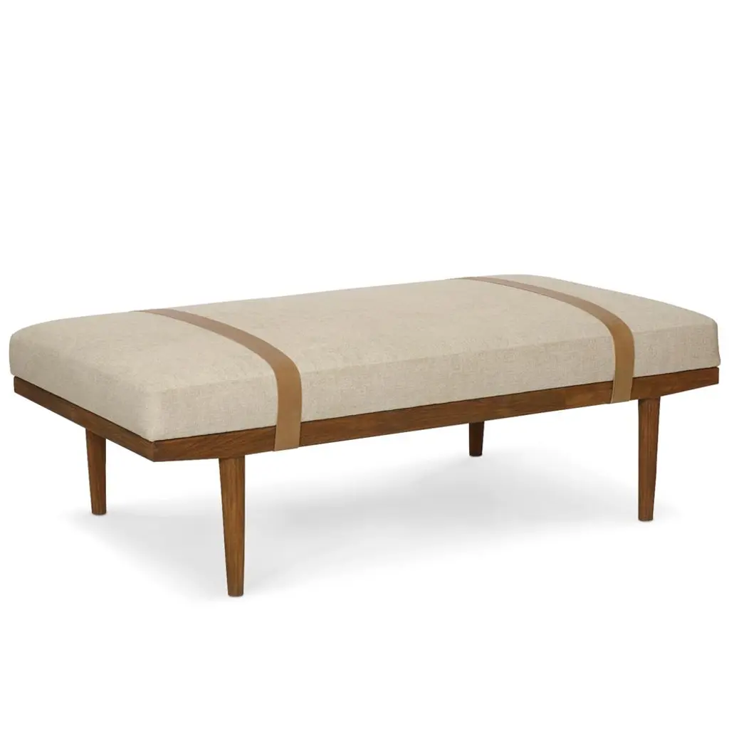 Lemery Coastal Beach Beige Performance Brown Teak Wood Bench