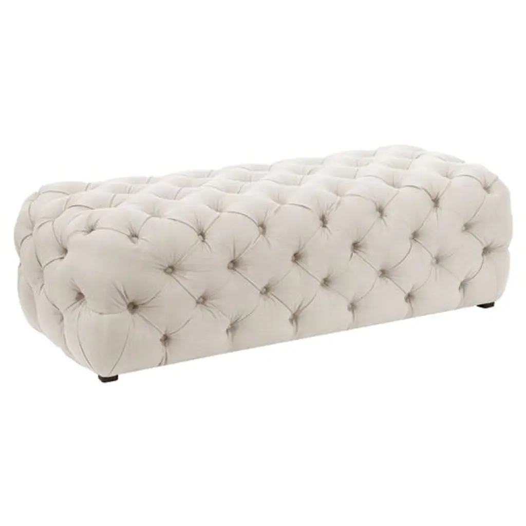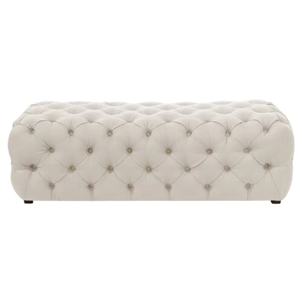 This eye-catching bench is designed with a sturdy pine frame and neatly tailored upholstery with allover tufting. A generous foam-and-fiber fill ensures long-lasting comfort and support. Handcrafted in the USA.