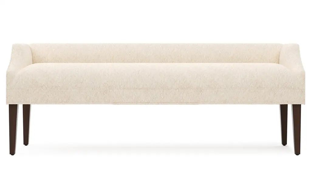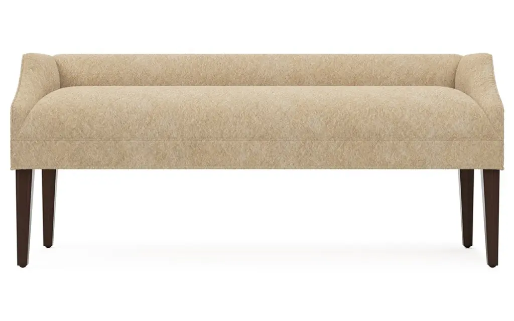 Lianna Accent Bench Cream: Upholstered Velvet, Solid Wood Legs, Transitional Style