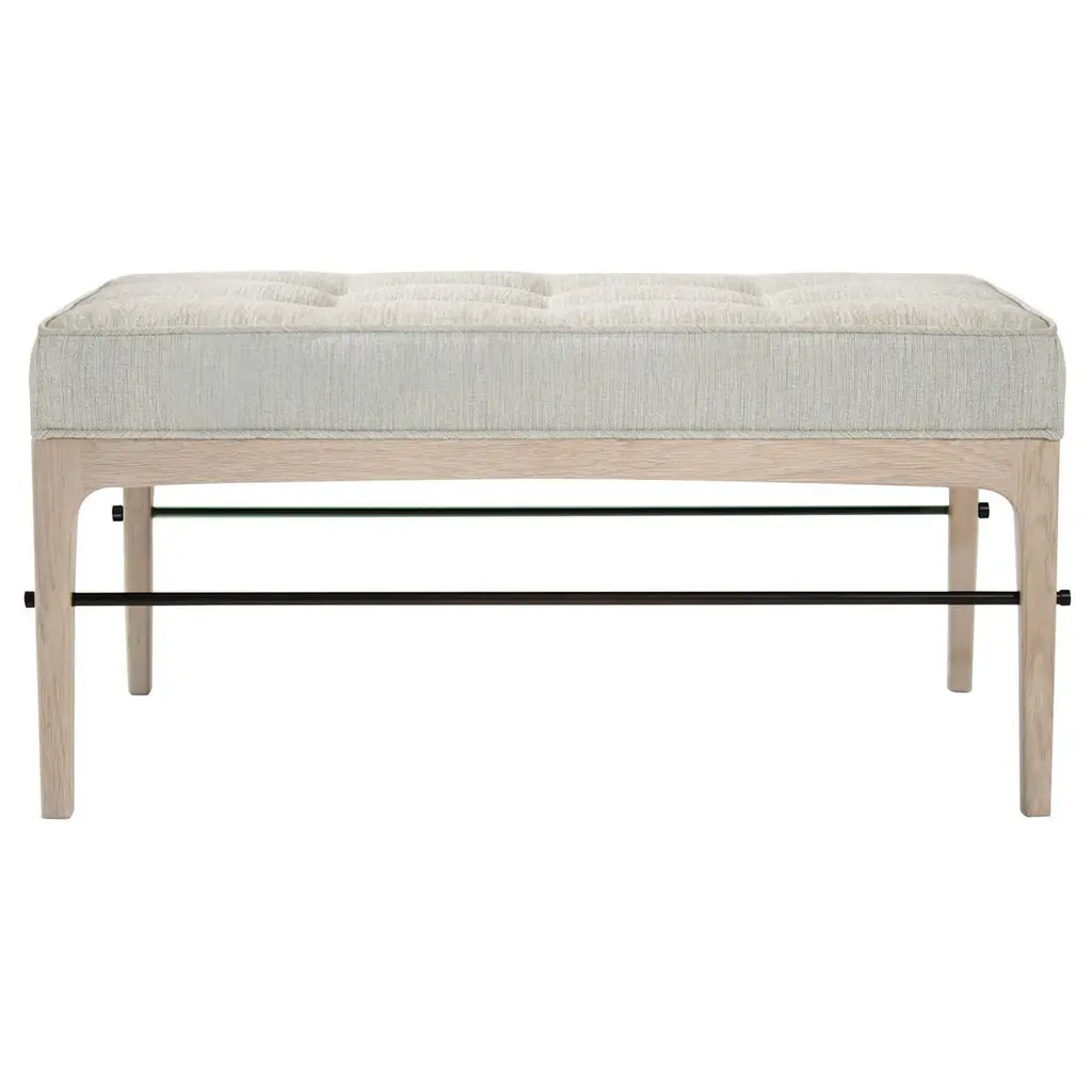 With a boxed leather upholstered cushion, the frame of this naturally designed upholstered bench is skillfully hand-finished with an intensive multi-step process, resulting in a beautifully brushed type of finish making the visible grain from the wood stand out.Dimensions: 49.75" W x 17.75" D x 17" H Grey Oak FinishShown in Twild-LE0295 Leather