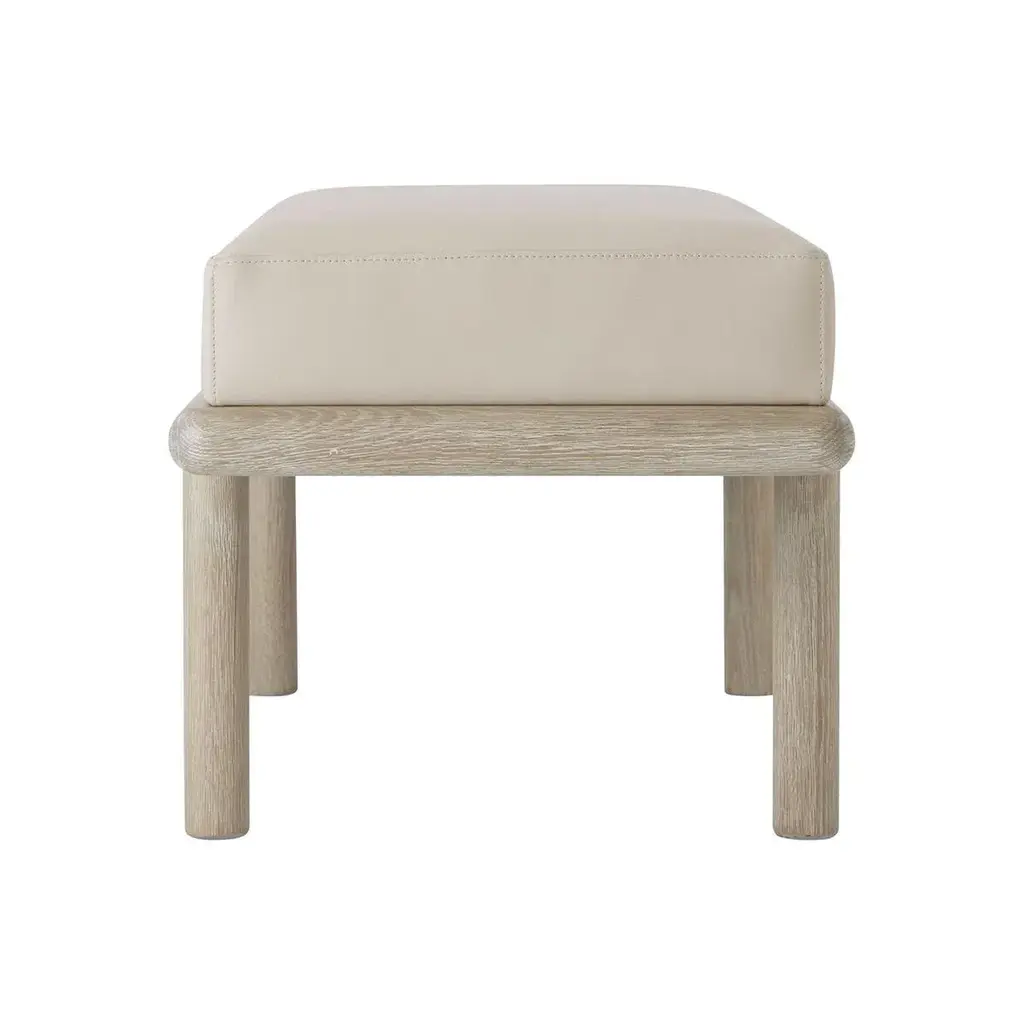 With a boxed leather upholstered cushion, the frame of this naturally designed upholstered bench is skillfully hand-finished with an intensive multi-step process, resulting in a beautifully brushed type of finish making the visible grain from the wood stand out. Dimensions: 49.75" W x 17.75" D x 17" H Grey Oak Finish Shown in Twild-LE0295 Leather