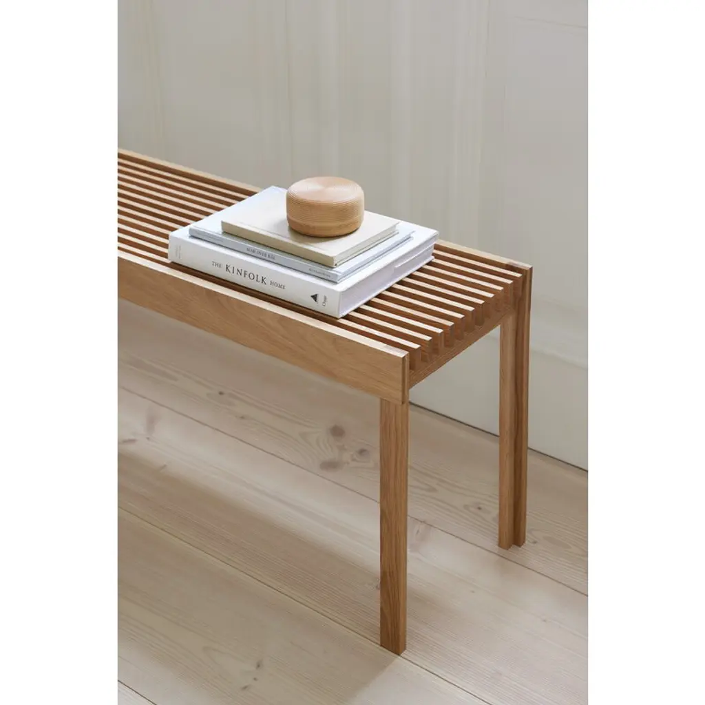 The Lightweight bench by Form & Refine is a multifunctional piece of furniture designed by Herman Studio that functions both as an additional seat and a side or coffee table. As the name implies, the bench is extremely light and therefore easy to move around as needed. Skillfully made oak, the bench comprises a sturdy frame and a seat made up of wood slats which add an elegant detail to the bench’s otherwise very minimalist look. “With Lightweight, we wanted to pay tribute to classic carpentry traditions by constructing the furniture with beautiful and old-style wooden joints. We wanted to make a light impact furniture in both a visual and physical sense which reflects the quality grounded in our contemporary design language. The design is graphically tight but at the same time soft and tactile when used,” Herman Studio’s Helle Herman Mortensen and Jonas Herman Pedersen have said.