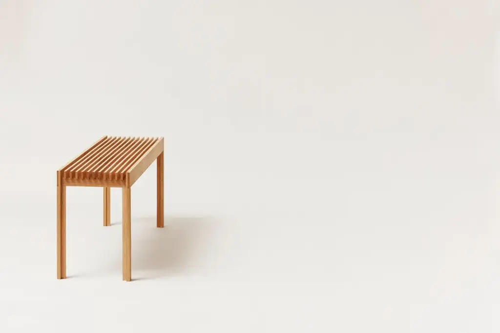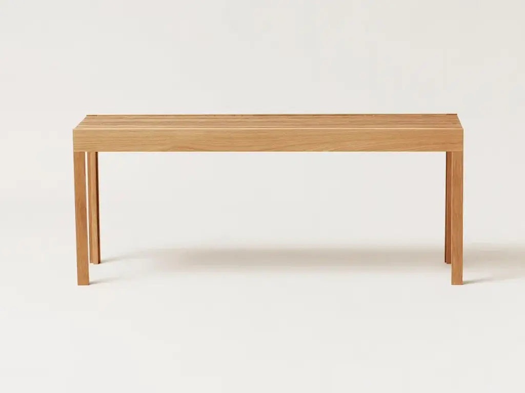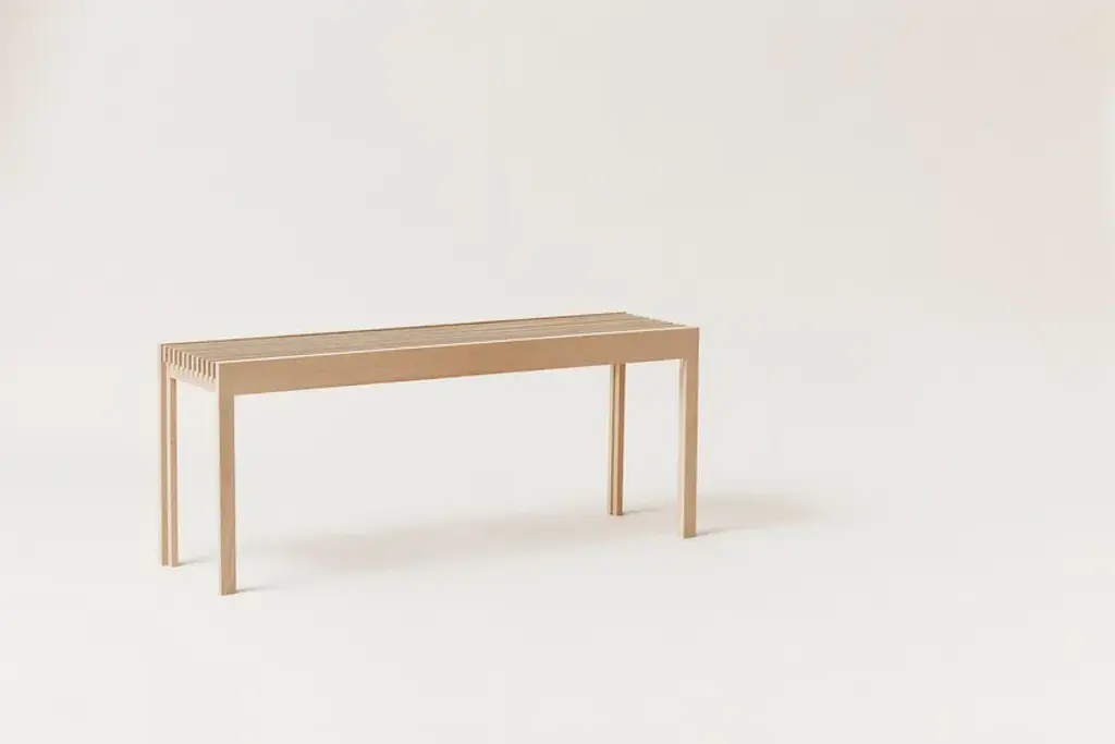 The ultra-light weight bench Lightweight is also sturdy and strong thanks to the high-quality design of the detailed half lap joints and the solid wooden slats. This is an elegant and composed bench, and its minimalist design makes it perfect for use in most living spaces, kitchens, hallways, bedrooms and even bathrooms. This bench can accommodate 2 persons and take a weight of 200 kg. Made of local certified European solid wood.“With the Lightweight, we wanted to pay tribute to classic carpentry traditions by constructing the furniture with beautiful and old-style wooden joints. We wanted to make a light impact furniture in both a visual and physical sense which reflects the quality grounded in our contemporary design language. The design is graphically tight but at the same time soft and tactile when used.” Herman Studio