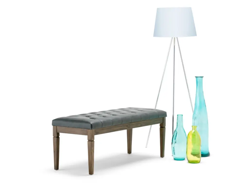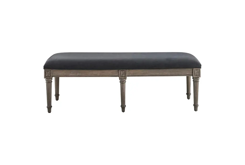 The Lilith Upholstered Bench is a traditional style piece, crafted from fabric and wood, perfect for adding a touch of elegance to your bedroom. Its French grey color and classic French neoclassical design make it a stunning addition to any home.