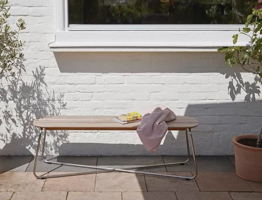 Sturdy and light, the Lilium Bench can be used indoors and out, serving as a bench or coffee table. Its X-shaped frame is made of durable stainless steel, and topped with solid teak planks that run lengthwise for a slender aesthetic. Gracefully rounded corners further the appeal of this modern bench. To create Lilium, Bjarke Ingels Group collaborated with Skagerak to create a collection that is “both beautiful and adaptable, making it feel at home in both interior and outdoor environments," says BIG senior architect Jakob Lange. Made in Indonesia.