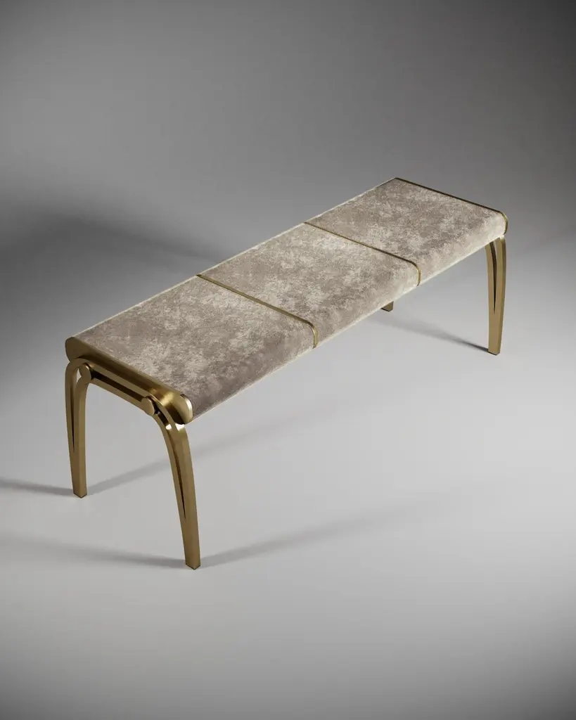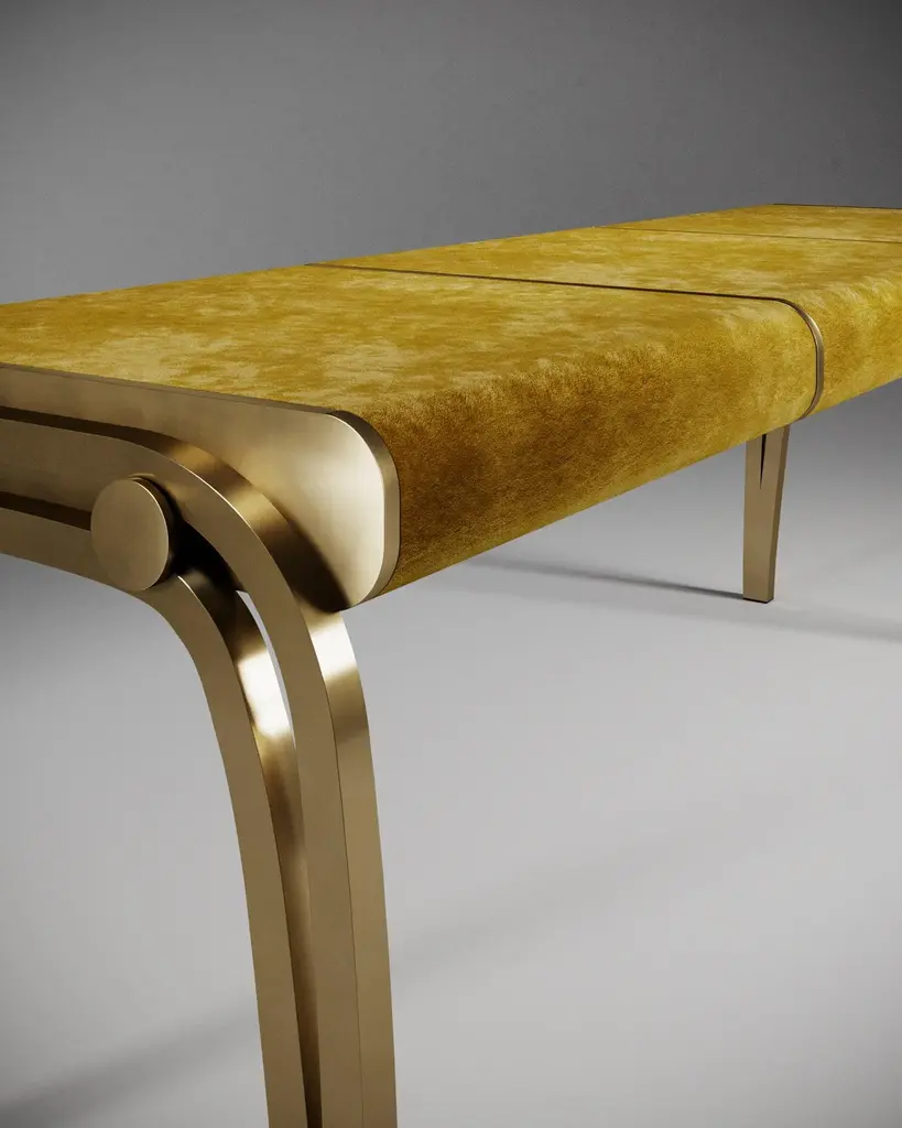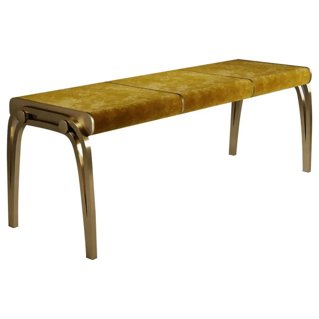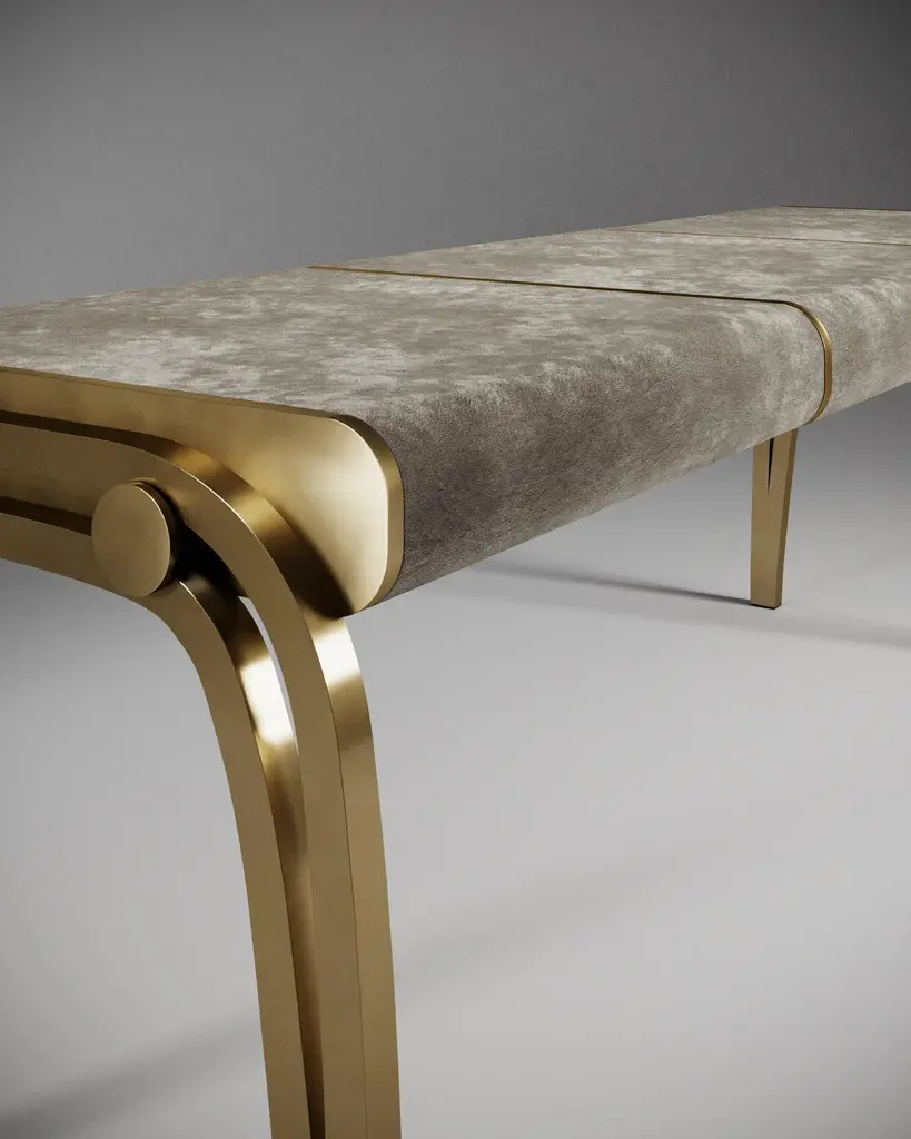 The Paris based label has distinguished themselves since their launch, with their iconic use of shagreen mixed with brass and other exotic materials. All furniture is handcrafted by skilled artisans, ultimately making each piece unique, designed in Paris and produced in the Philippines.The limited edition Victoria bench by R&Y Augousti is a sophisticated piece that provides comfort, whilst retaining its elegant and luxurious aesthetic. This piece is upholstered in a grey black-hue Pierre Frey velvet, with a bronze-patina brass frame. Available in other finishes and with shagreen inlay, see images at end of slide. This bench is a part of a 4-piece limited edition capsule collection by R&Y Augousti, see images at end of slide.The dimensions of this piece are 141 x 47 x 50 cm All R&Y Augousti pieces are handmade by artisans, ultimately making each piece unique. Wipe clean with soft dry cloth.Acclaimed design duo Ria & Yiouri Augousti have established themselves since the 1990s as pioneers of modern-vintage style through their luxurious Art Deco inspired collections.The Paris based label has distinguished themselves since their launch, with their iconic use of shagreen mixed with brass and other exotic materials. All furniture is handcrafted by skilled artisans, ultimately making each piece unique. All shagreen-covered items should be kept out of direct sunlight, color variants may occur on the stingray and other exotic finishes, but this showcases the Parisian label's commitment to creating authentic luxurious products using natural components.