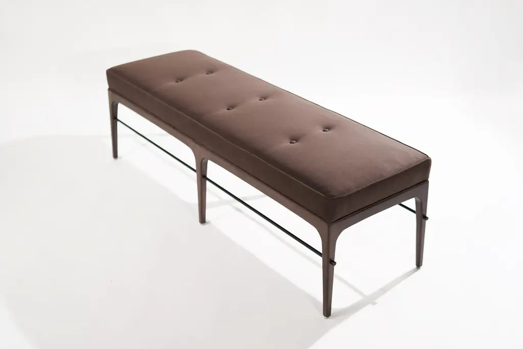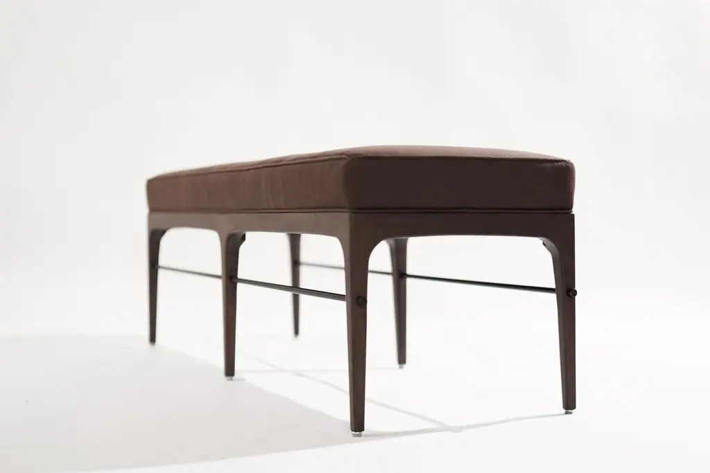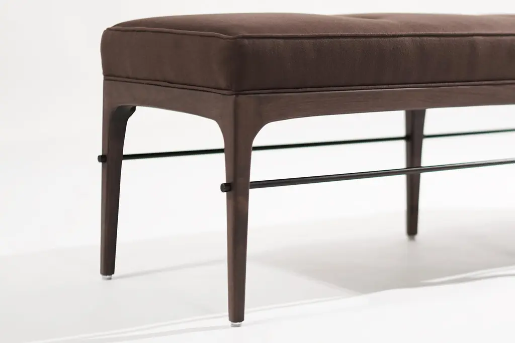 Inspired by Mid-Century Modern legend Edward Wormley, "The Linear Bench" embodies modern minimalism with clean lines and a sturdy metal stretcher.Explore our seven wood finishes and four metal options by reviewing all the images in the listing.Production lead time: 10–12 weeks. Priced as shown. Available COM only (4 yards). Contact us to discuss customization options.Experience the fusion of simplicity and sophistication with "The Linear Bench." Elevate your space with contemporary elegance.
