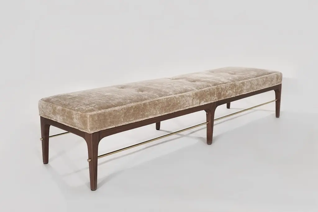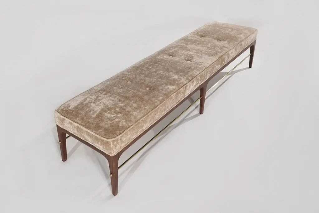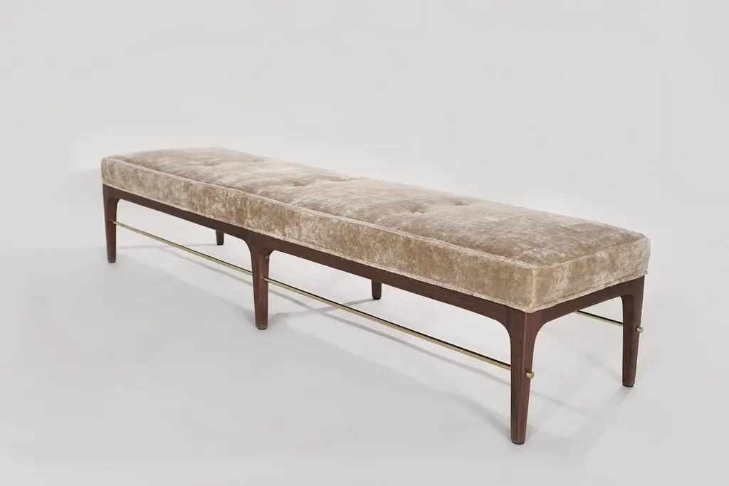Inspired by Mid-Century Modern legend Edward Wormley, "The Linear Bench" embodies modern minimalism with clean lines and a sturdy metal stretcher.Explore our seven wood finishes and four metal options by reviewing all the images in the listing.Production lead time: 10–12 weeks. Priced as shown. Available COM only (5 yards). Contact us to discuss customization options.Experience the fusion of simplicity and sophistication with "The Linear Bench." Elevate your space with contemporary elegance.