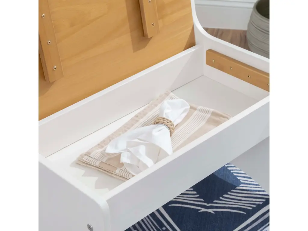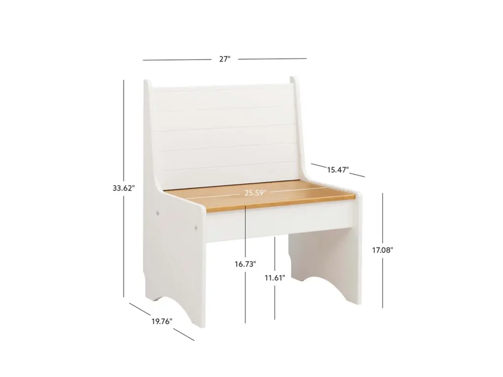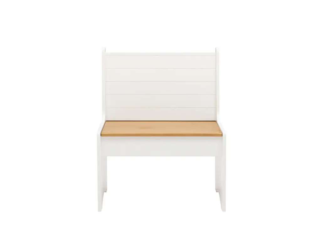 This Small Bench Will Bring A Refined Rustic Style To Any Room In The House. The Compact Design Provides A Wealth Of Options For Tight Spaces Or As Part Of A More Oversized Nook Set With Matching Pieces. The Solid Pine Construction Features A Backrest With Horizontal Slats. The White Painted Frame, And A Natural Finish On The Seat, Brings The Beautiful Woodgrain To The Forefront. Add To Your Storage Needs Without Sacrificing Space; The Benchtop Opens On Hinges To Reveal A Hidden Compartment, Great For Stowing Away Linens And Runaway Items.