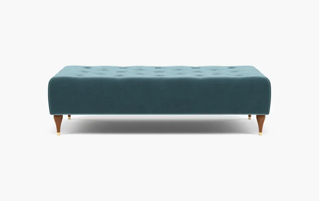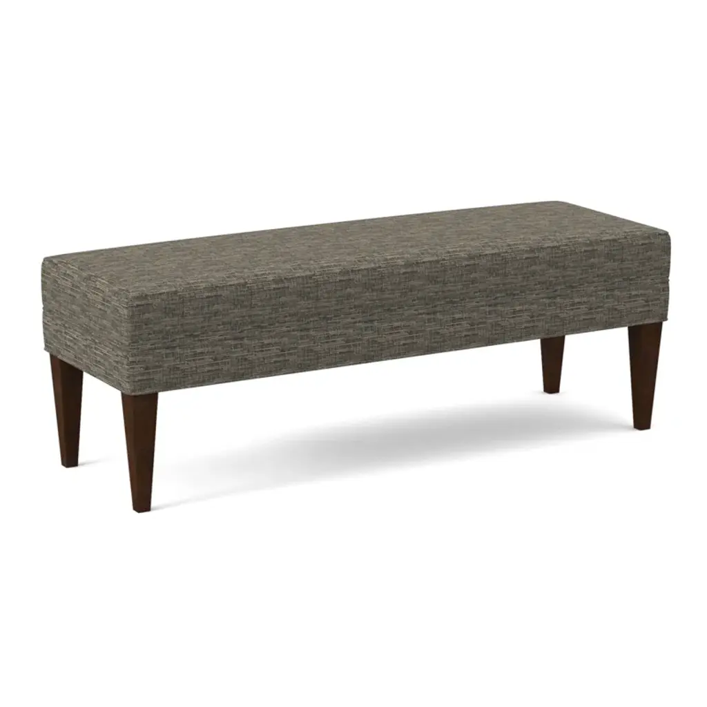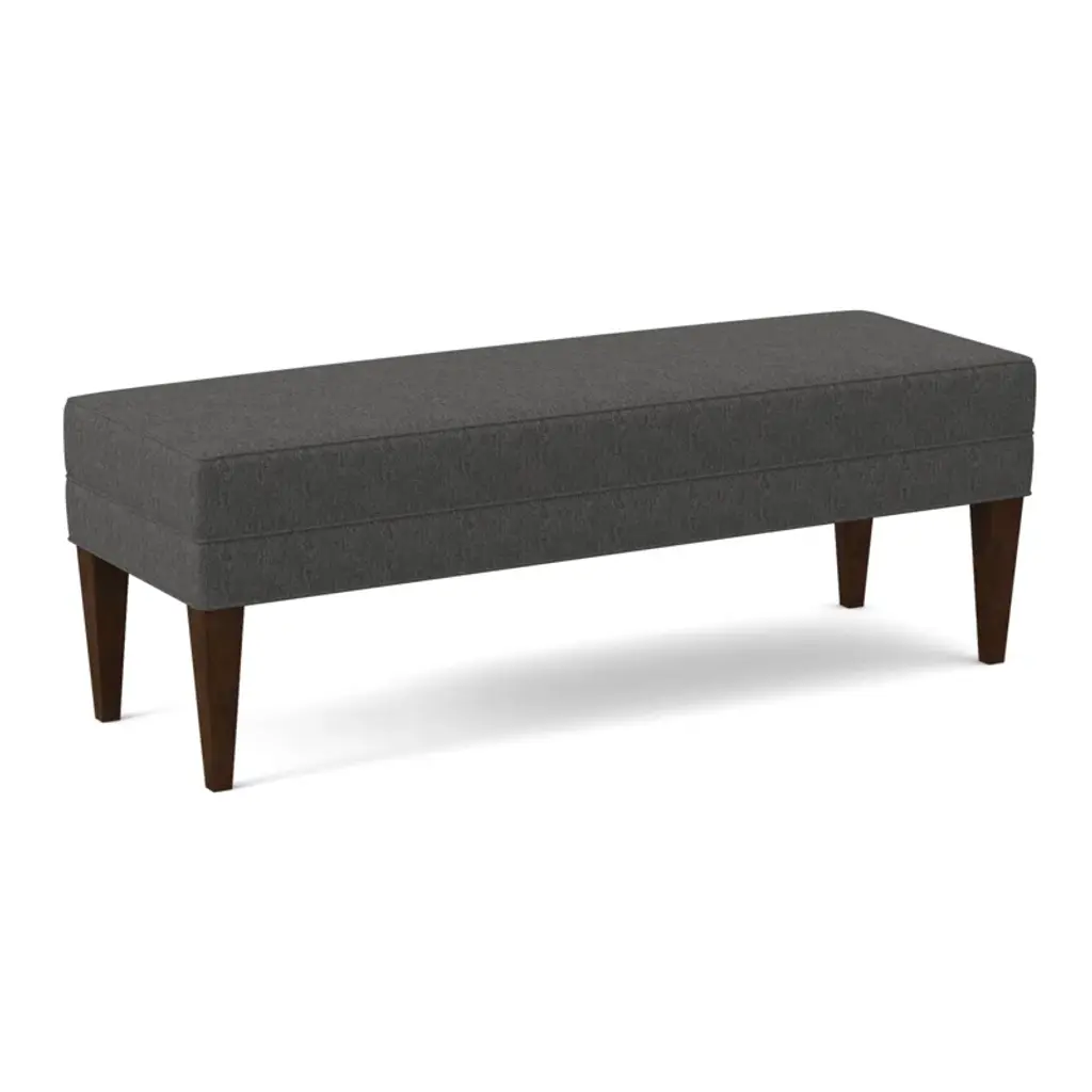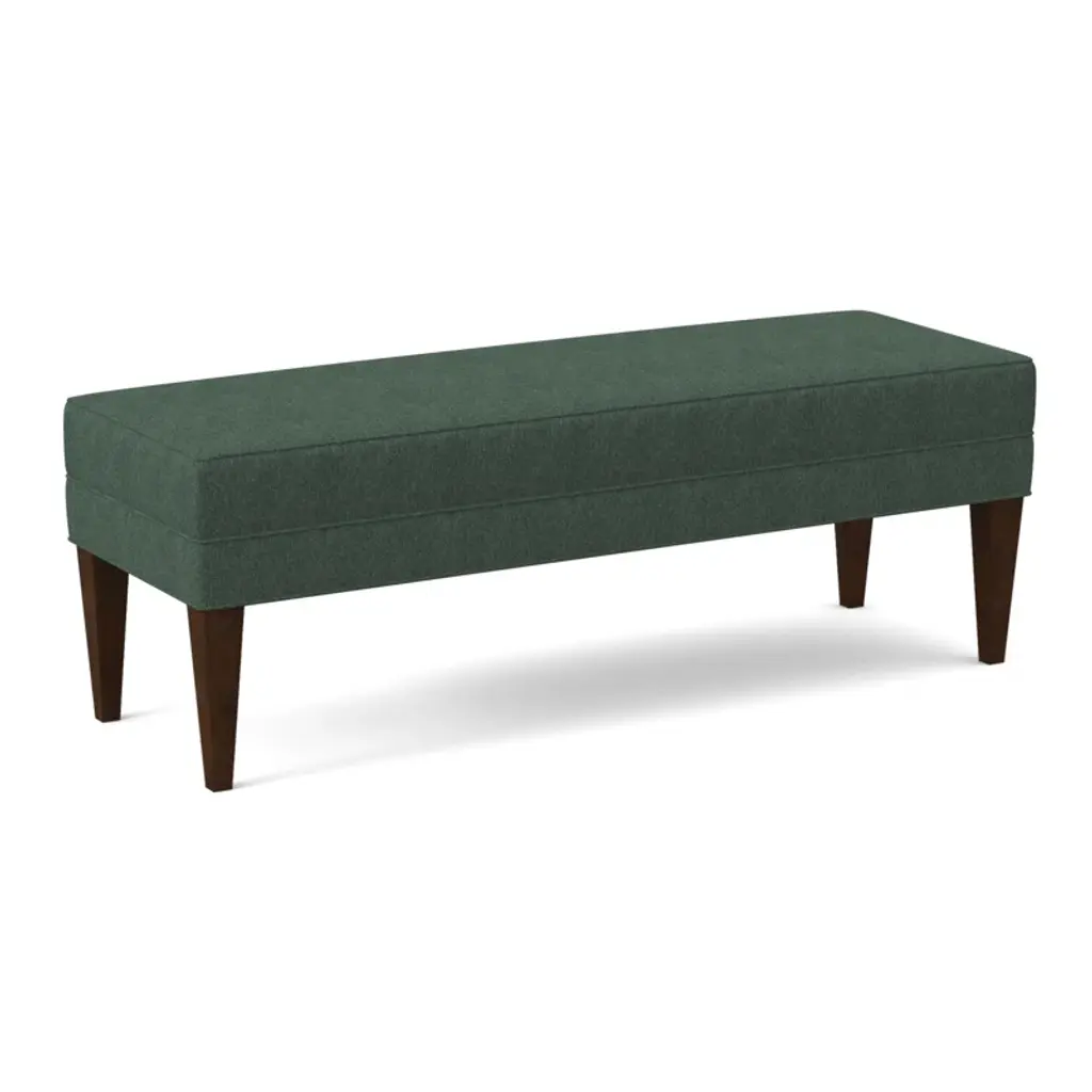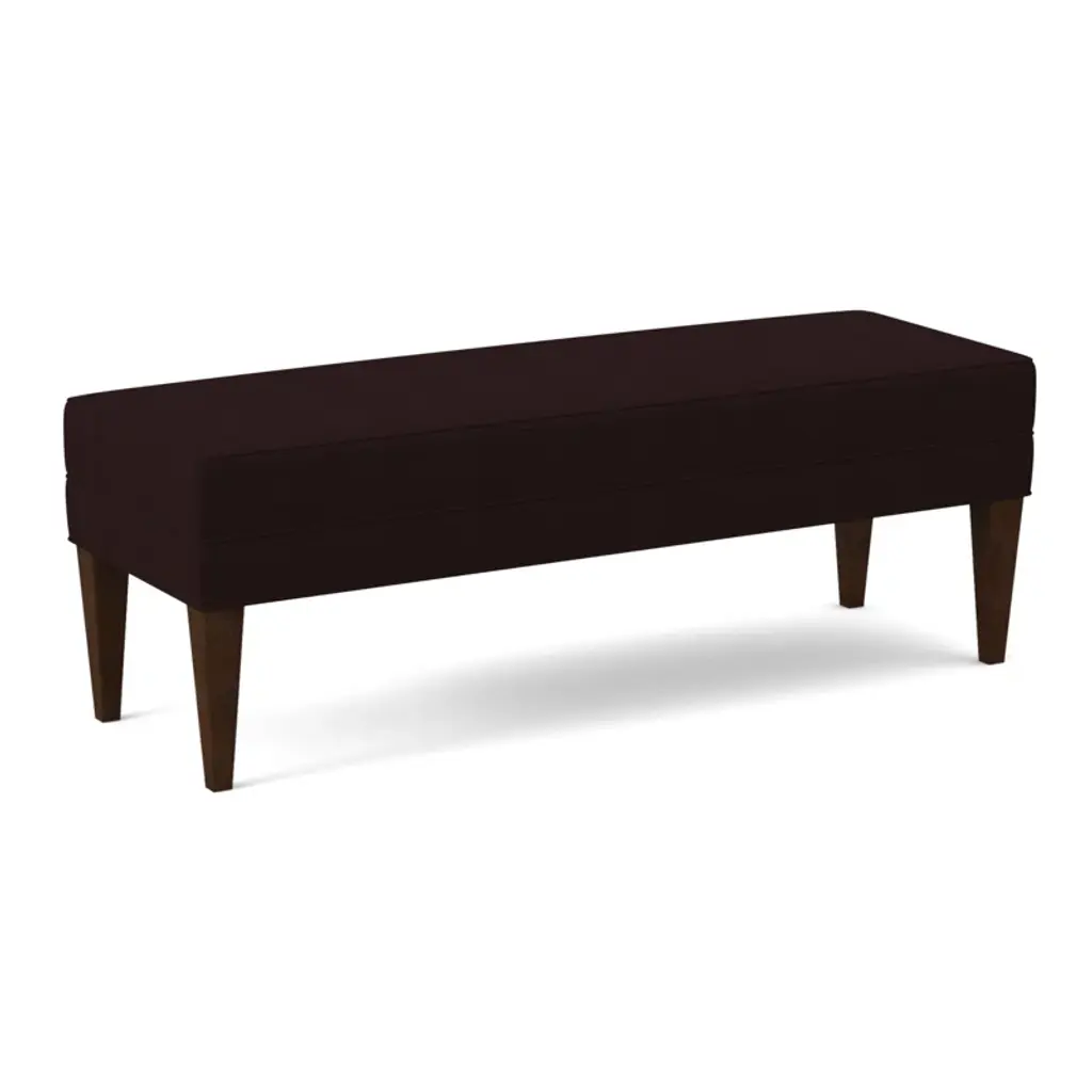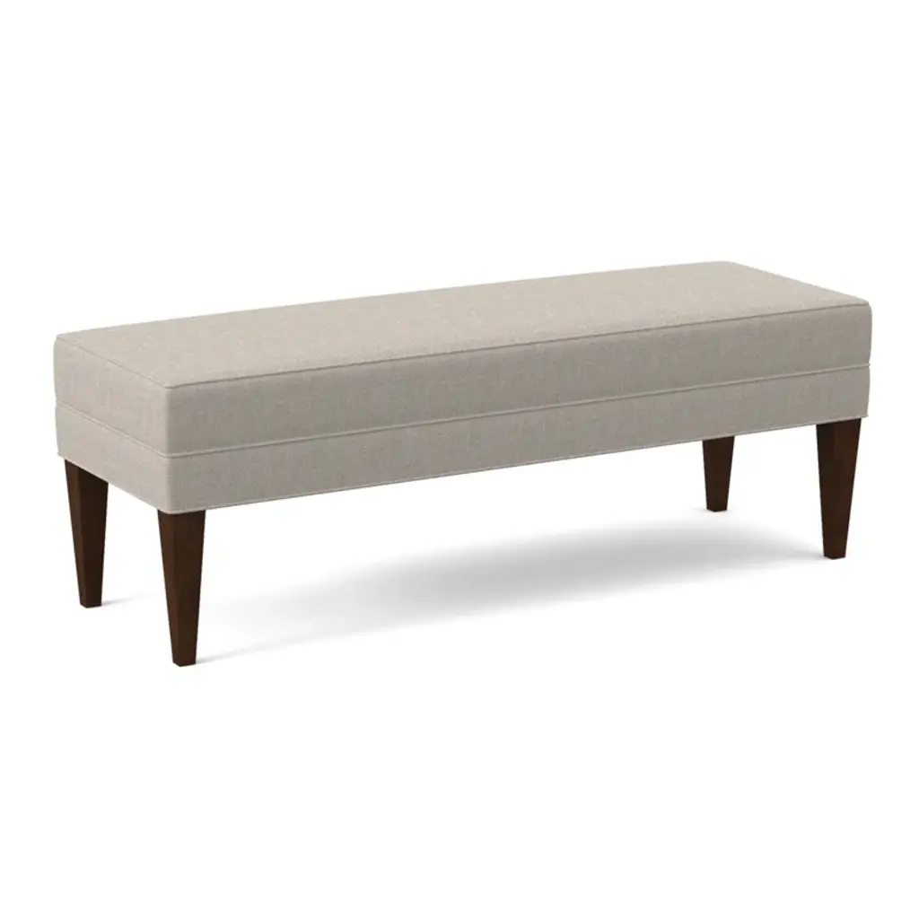 A classic foot of the bed bench featuring a boxed top and upholstered border. Solid Beech tapered legs