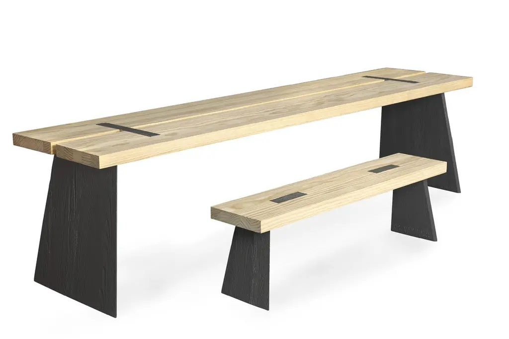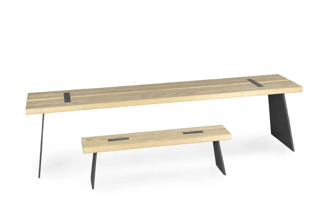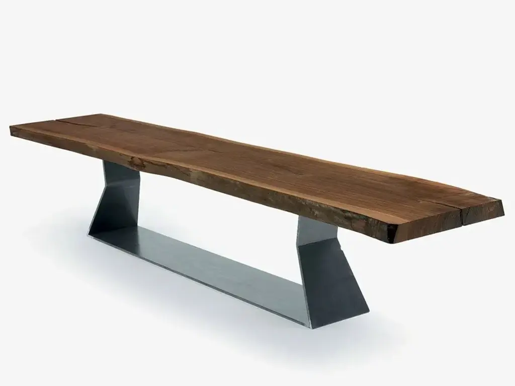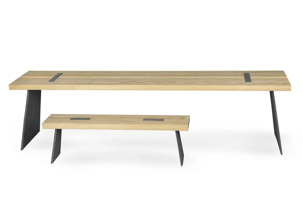 Table top and seat in Northern pine or Accoya. Base in cast iron.For indoor and outdoor usePrice is for Northern pine. Accoya : + € 1300. Other woods and sizes offered on demand Measures: H 42 W 120 D 30 cm. On demand: H 42 W 140 D 30 cm.
