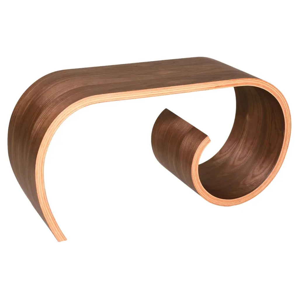 This bench is made with laminated bent plywood with several wood veneer options.. The one showed on the pictures is made with Elm white oiled veneer.