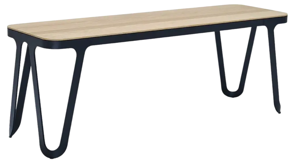 Loop bench 240 walnut by Sebastian Scherer Material: Aluminium, walnut Dimensions: D240x W38 x H45 cm. Weight: 30.5 kg Also available: Colours: solid wood (matt lacquered): black and white stained ash / natural oak / american walnut frame (matt): snow white / light sand / space blue / graphite grey /dark bronze / ink black raw aluminium (not powder coated) The Loop series is characterized by its elegant and futuristic design language. The soft, yet geometric lines have a Scandinavian design reference, but also reminiscent of metal furniture of the Bauhaus era. All furniture in the series follow the same design principle. The only 6 mm thin aluminum frame is cut from a metal sheet and then bent. This gives it its stability and forms its characteristic, loop-like silhouette. This consistent design principle and craftsmanship make the Loop series so unique. Small embedded plastic gliders are discreetly integrated in the frame without disturbing the overall impression. This piece is attributed to the mentioned designer/maker. It has no attribution mark and no official proof of authenticity, however it is well documented in design history. I take full responsibility for any authenticity issues arising from misattribution