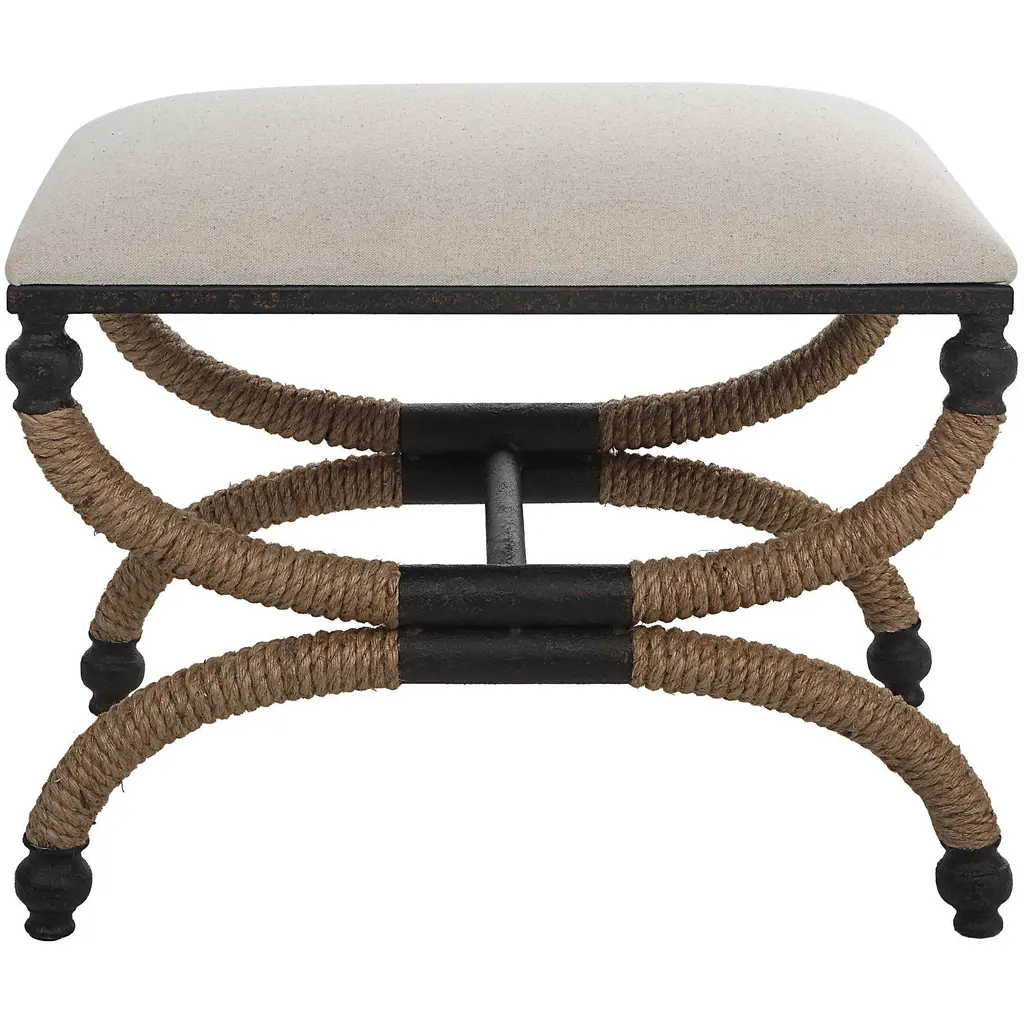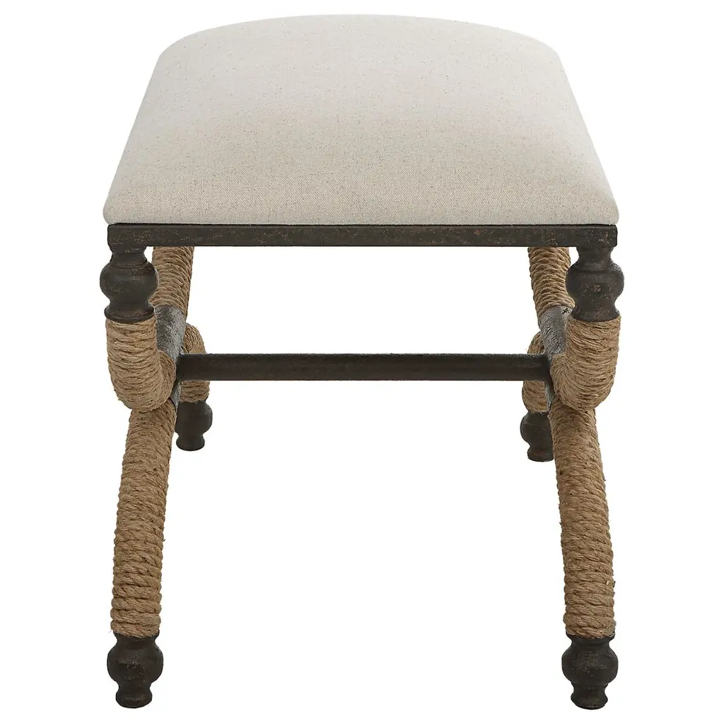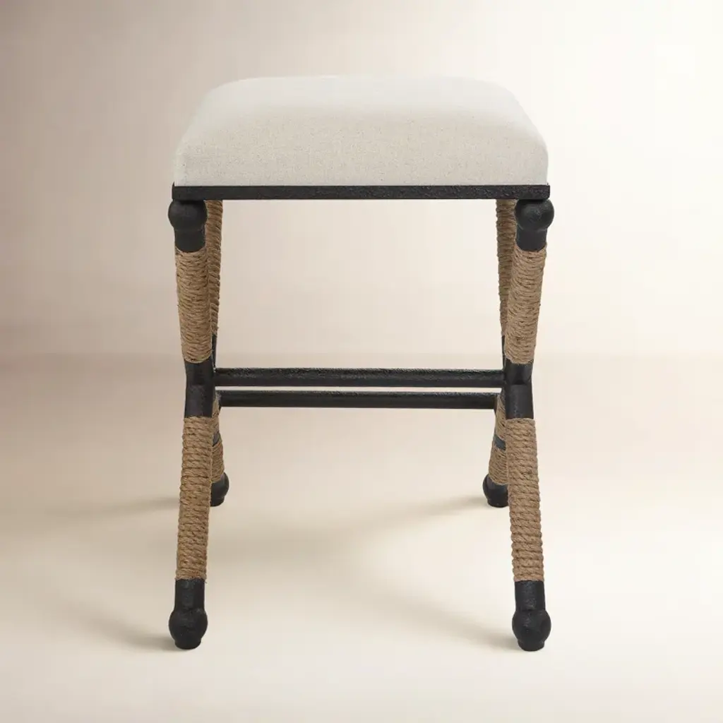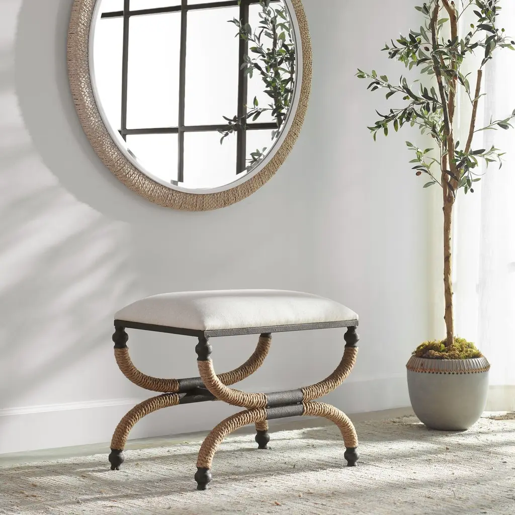 The Lorcan bench is a captivating piece that invites you to indulge in its rustic charm and nautical allure. Its elegantly curved iron frame is reminiscent of timeless maritime adventures, while the natural fiber rope accents add a touch of organic beauty. The cushioned top, upholstered in a soft oatmeal cotton blend fabric, offers a comforting embrace, making it the perfect spot to relax and unwind. This bench is not just a piece of furniture; it's a romantic escape into a world where elegance meets tranquility.