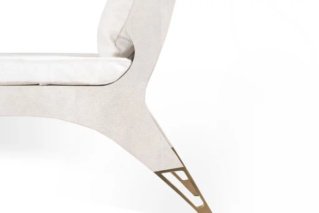 Lord Bench In Cream Shagreen And Bronze-Patina Brass By R&y Augousti